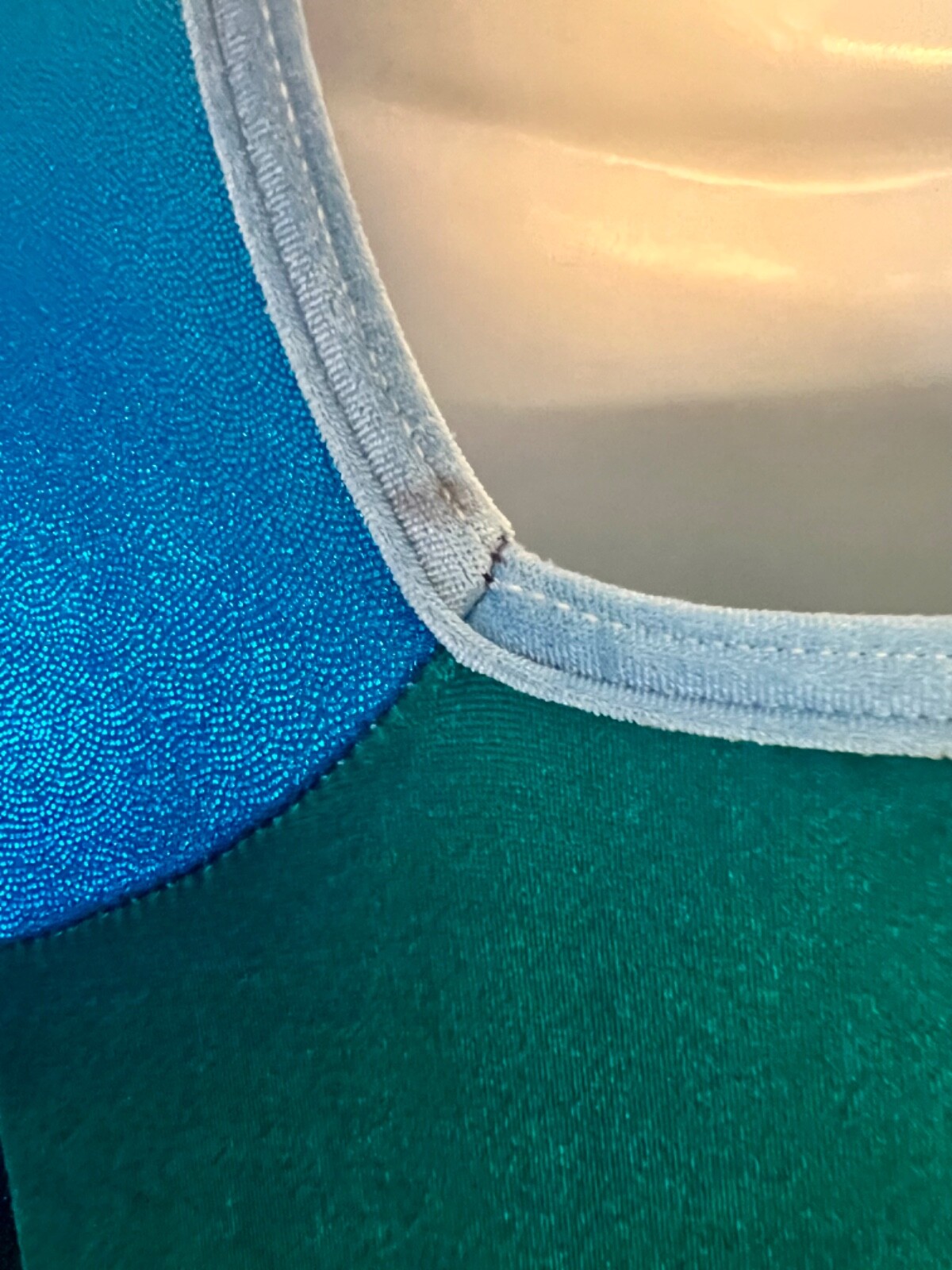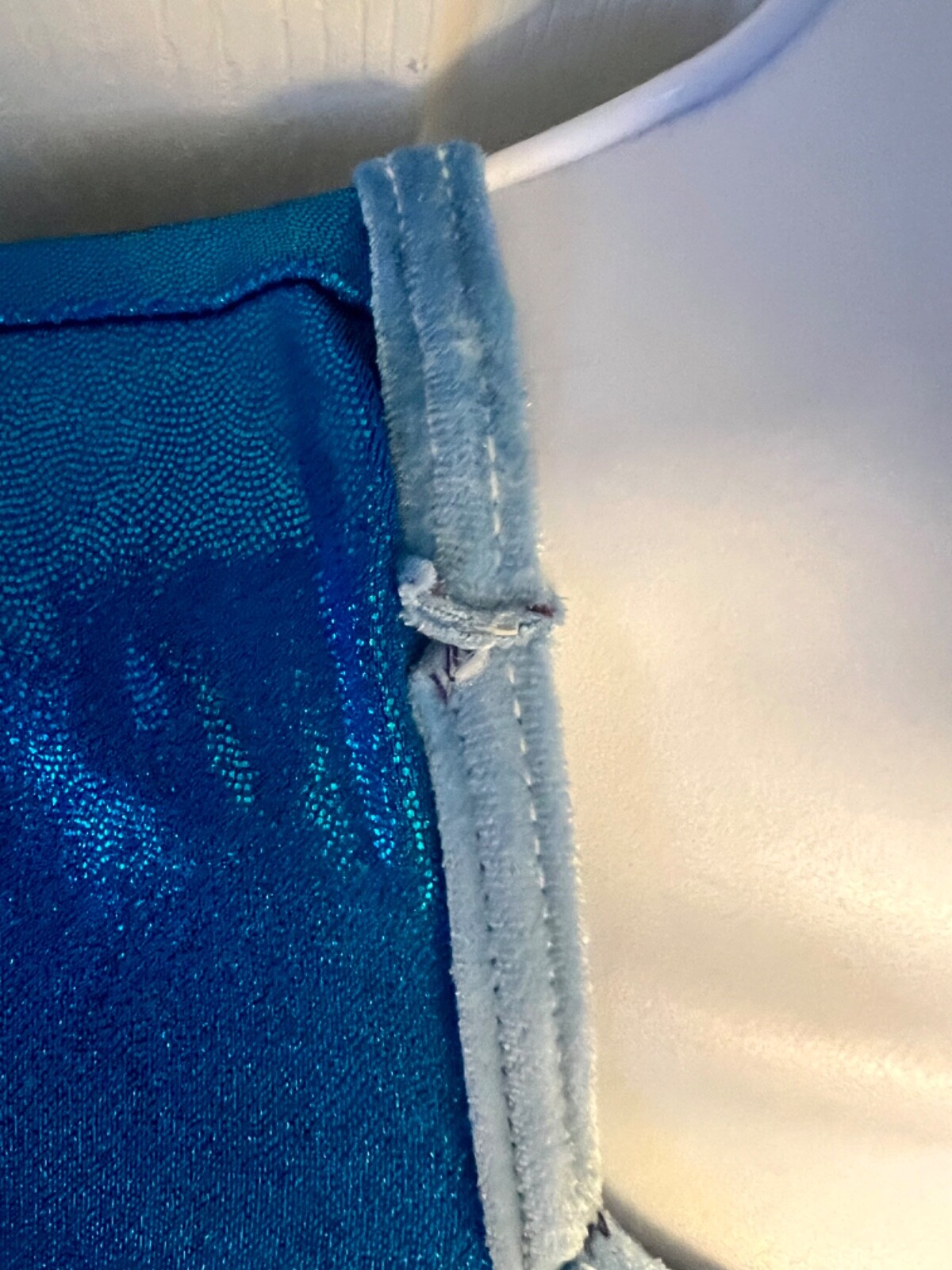как выглядит GK LADIES X-SMALL LgSLV GREEN VELVET BLUE FOIL GYMNASTICS DANCE LEOTARD SZ XS фото