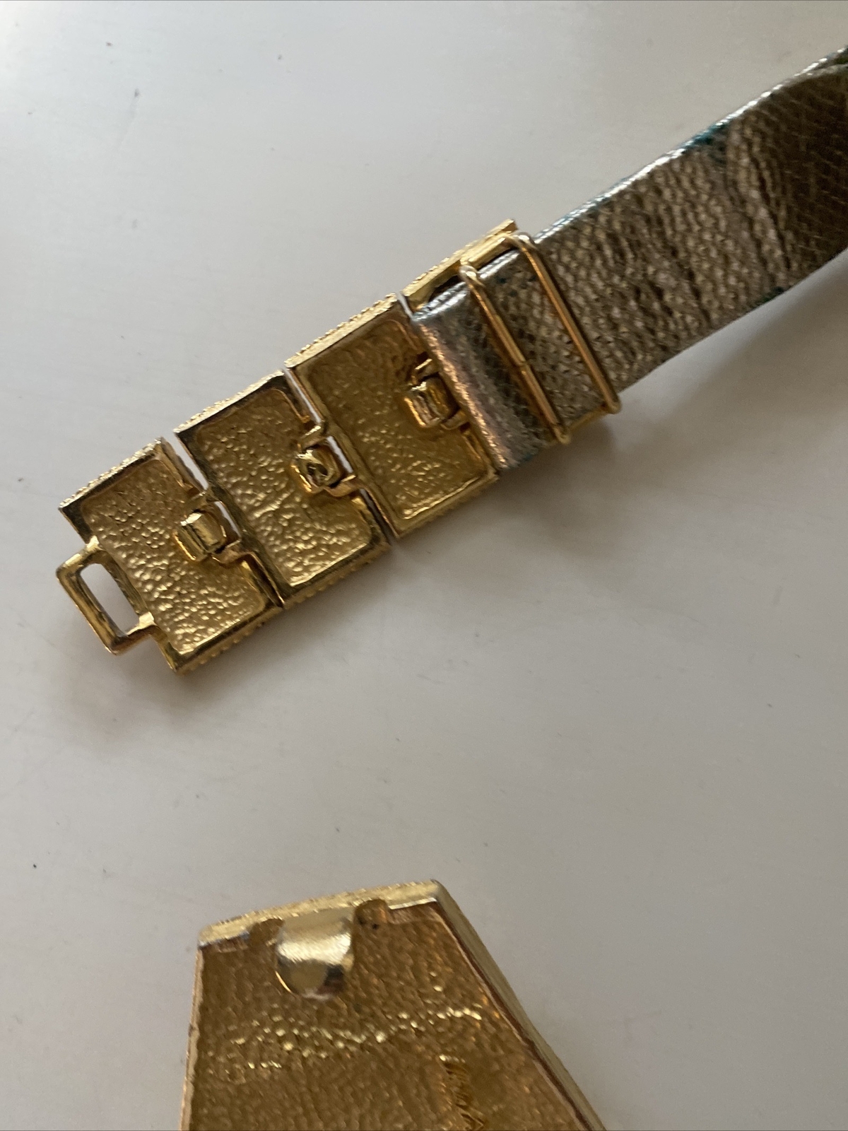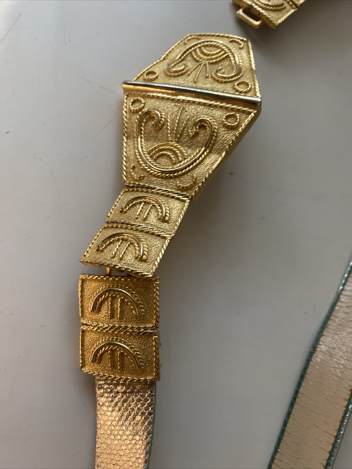 как выглядит ALEXIS KIRK Large Statement Piece GOLD 2 PIECE ORNATE BUCKLE 10 W/BELT VTG фото