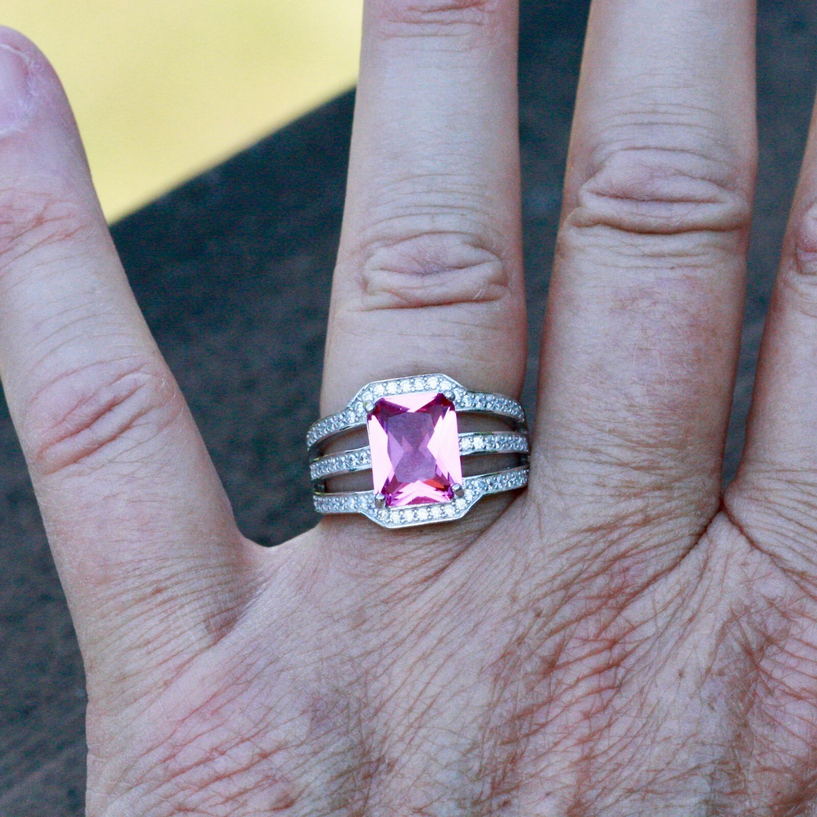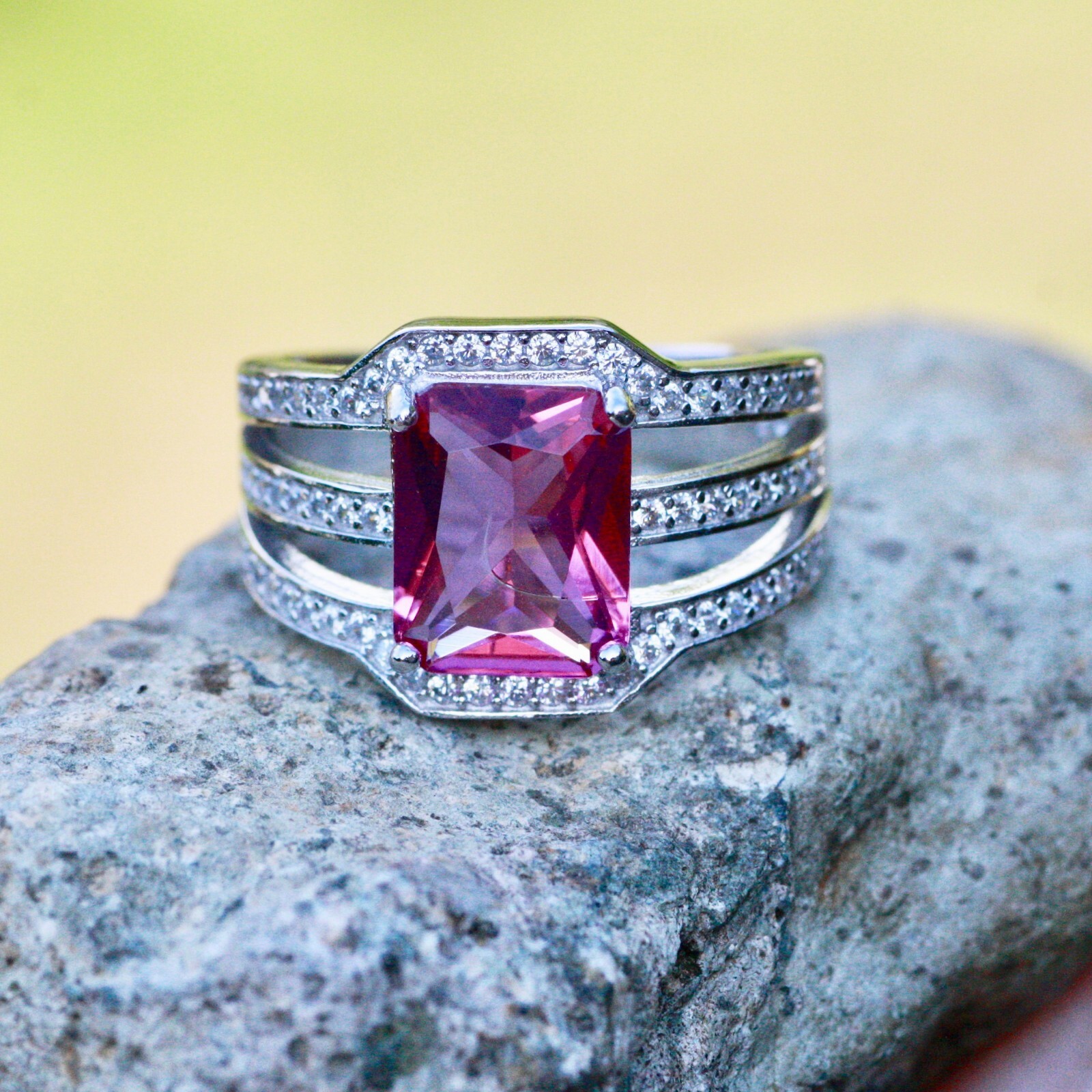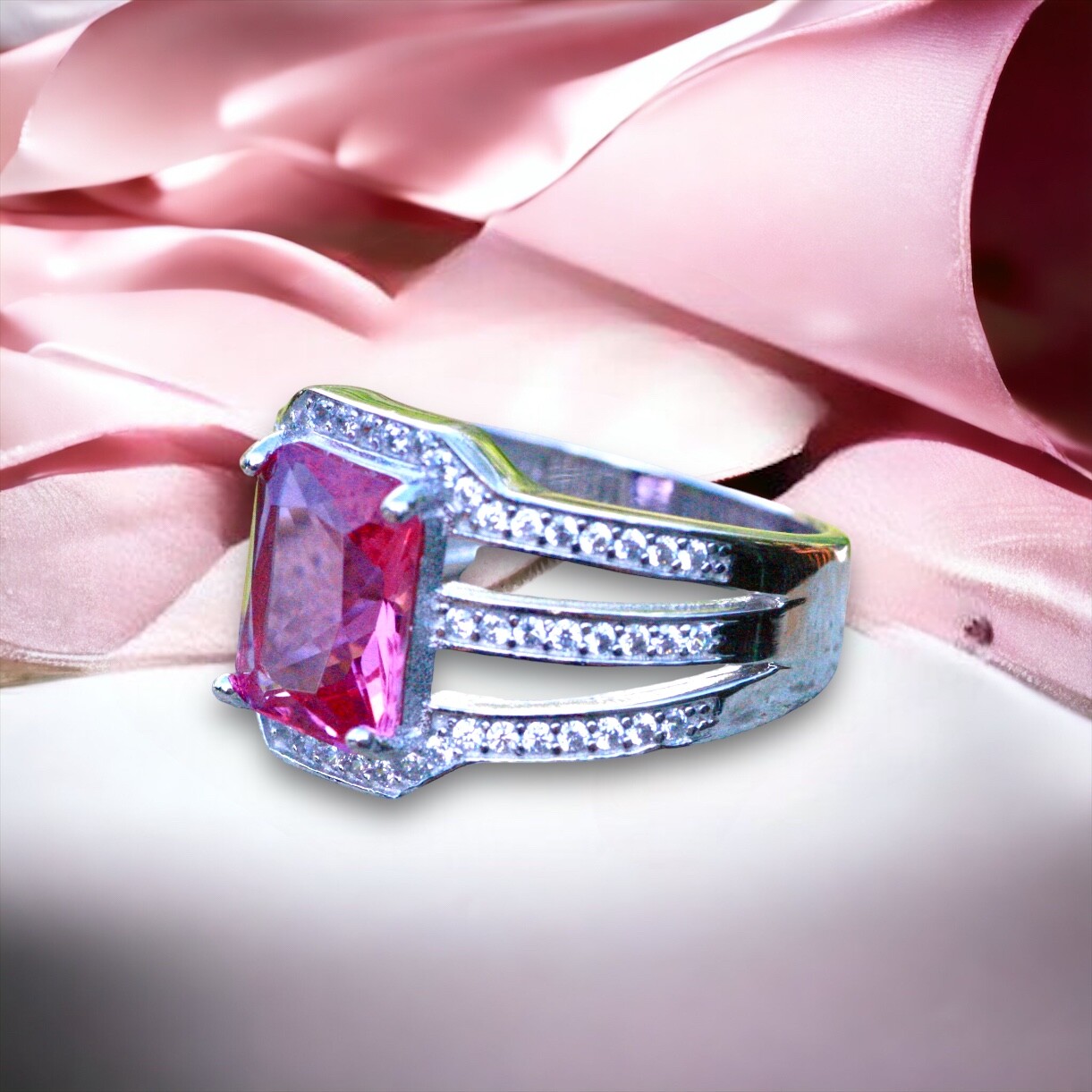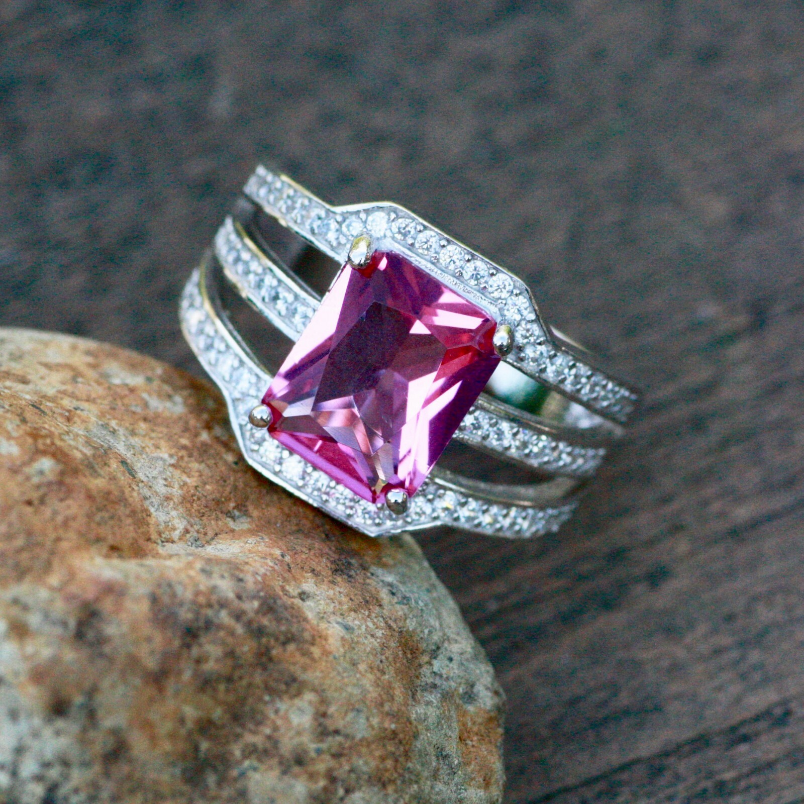 как выглядит Lab Made Pink Sapphire Ring Solid Sterling Silver 925 фото