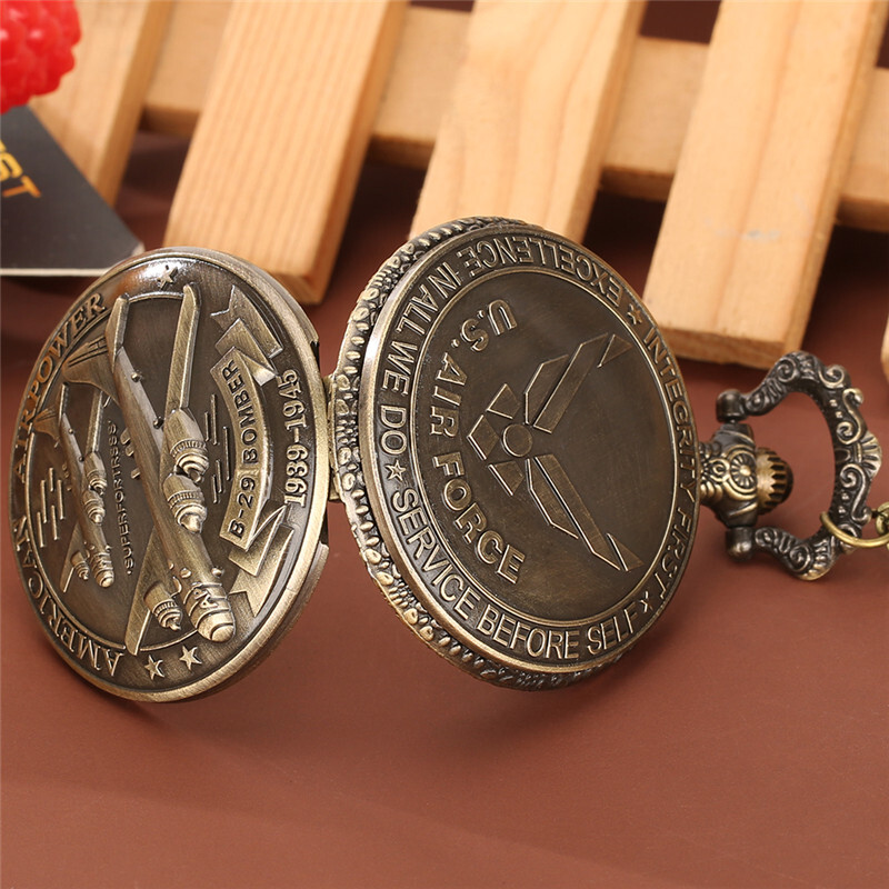 как выглядит Antique U.S. Air Force	 Airplane Design Unisex Quartz Pocket Watch 80cm Chain фото