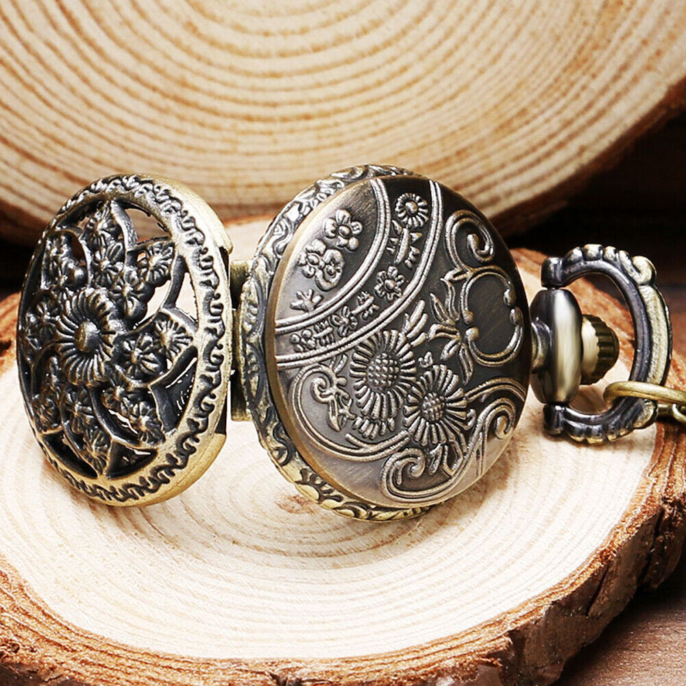 Mini Quartz Watches for Women Flower Case Pocket Watch Necklace Pendant Chain