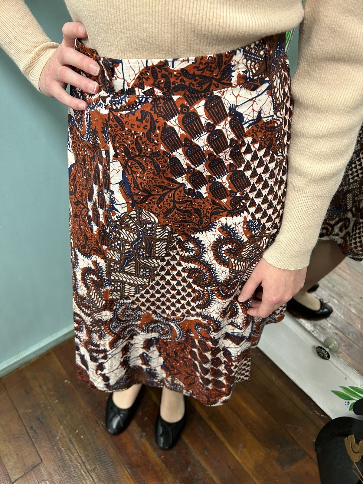 как выглядит Vintage 70 s tribal Print A-line Skirt S фото