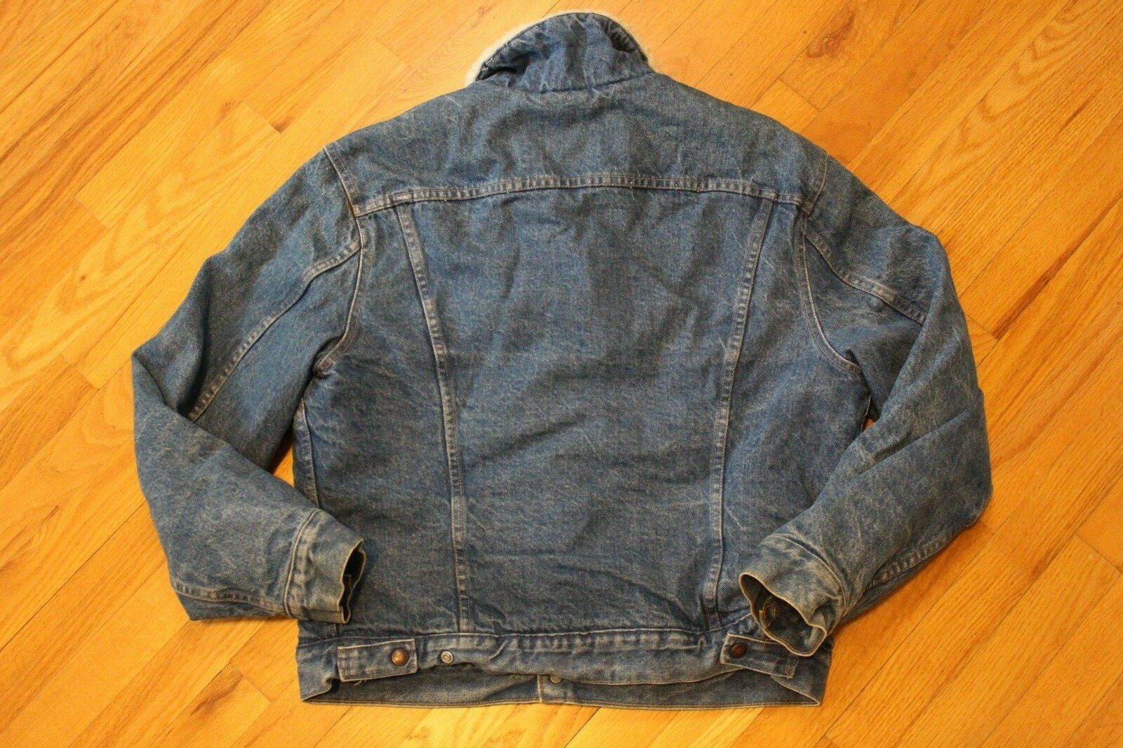 как выглядит Vintage 80s Levi Denim Sherpa Jacket Mens Size 44 Blue Jeans Made In USA фото