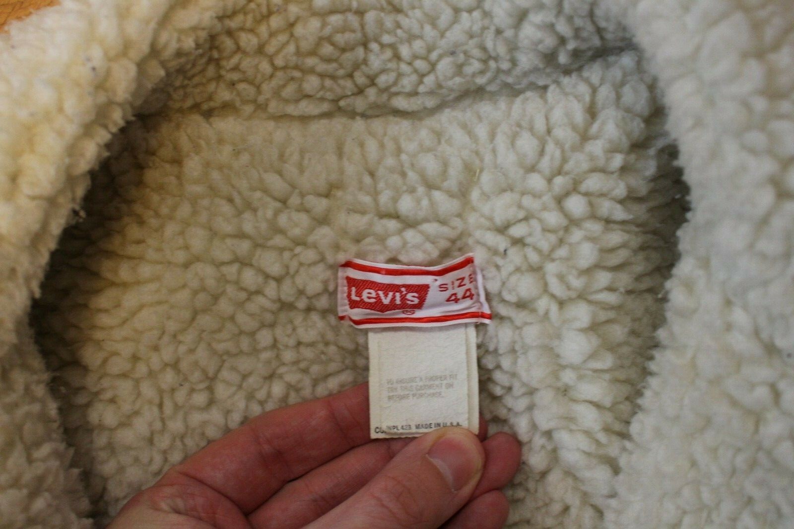 Vintage 80s Levi Denim Sherpa Jacket Men's Size 44 Blue Jeans Made In USA