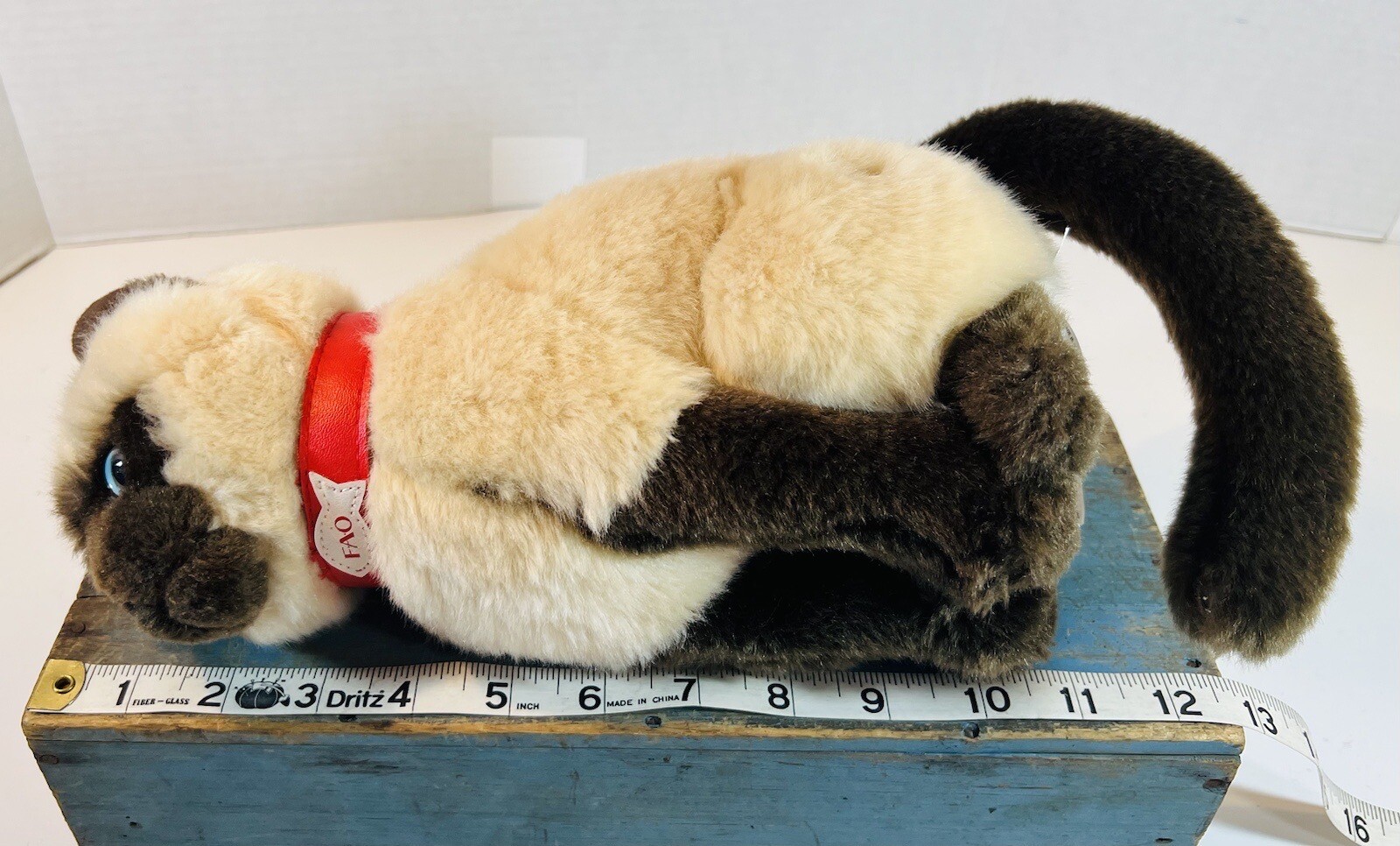 FAO Schwarz Siamese Cat Plush Feline Stuffed Animal w/Red Fish Collar Toys R Us