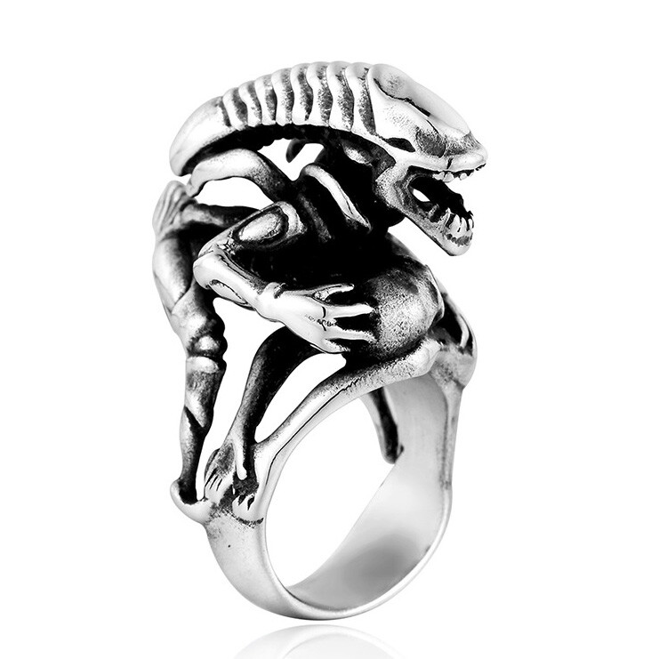 Gothic Space Alien Skull Rings Stainless Steel Men's Heavy Biker Jewelry Ring