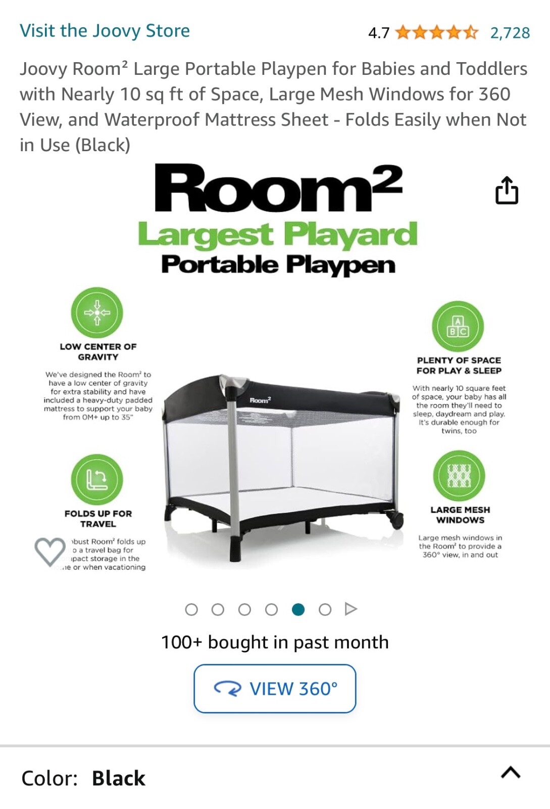 как выглядит Joovy New Room2 Portable Playard, Black for baby фото