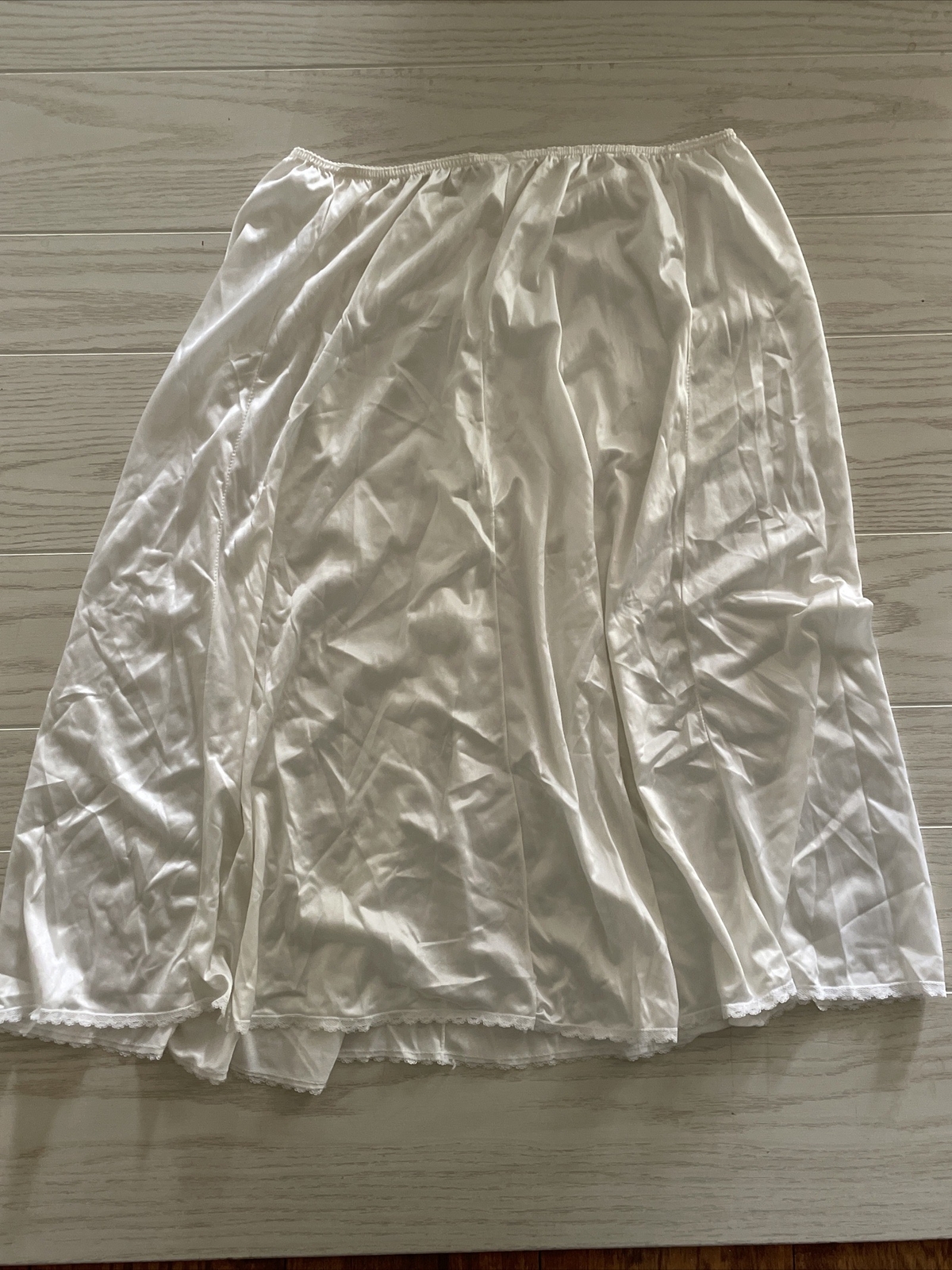 как выглядит Women s Plus Size 1X White Nylon Half Slip Long EUC Lace Detail Mel-Lin Lingerie фото