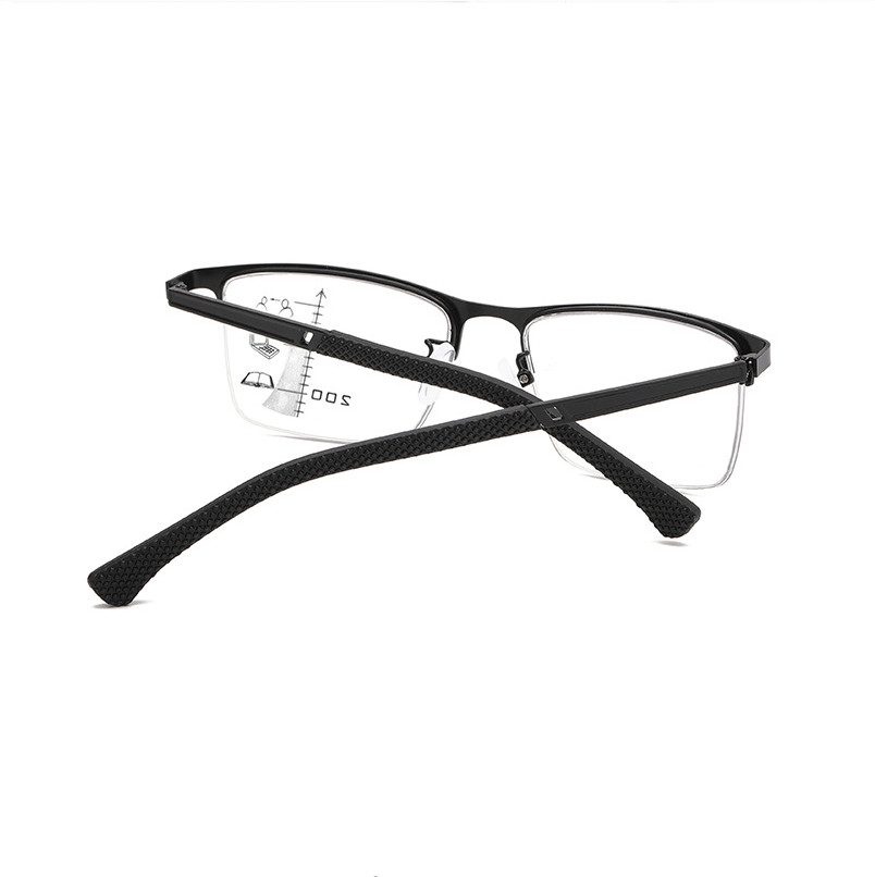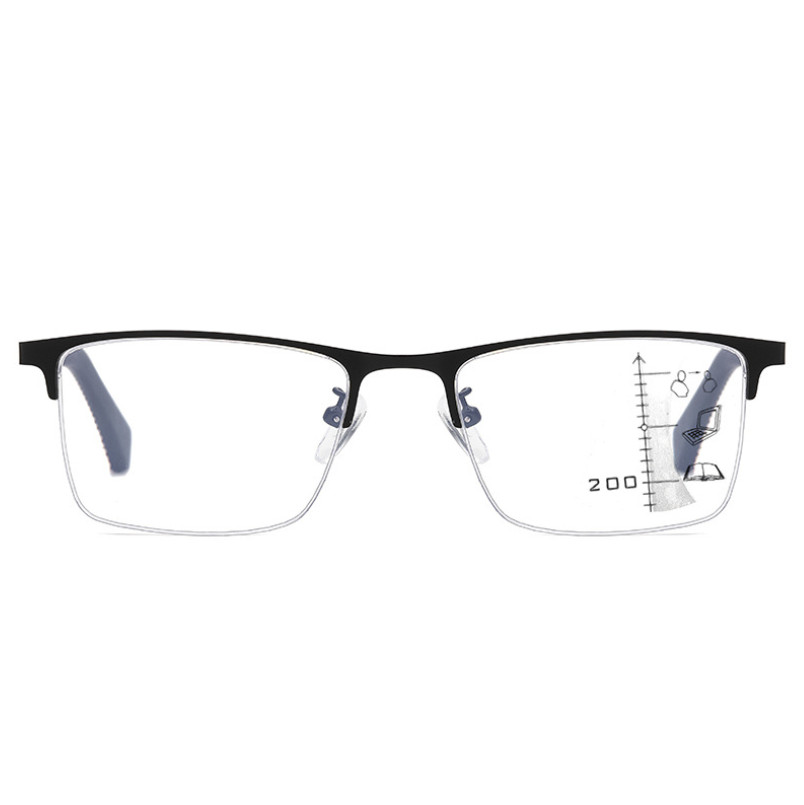 Men Metal Square Photochromic Progressive Reading Glasses Half Frame Sunglasses