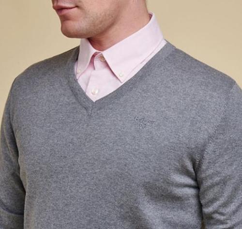 как выглядит Barbour Harry V-neck Sweater Wool/ Cashmere Jumper Grey Marl XL NWT -MKN0953GY52 фото