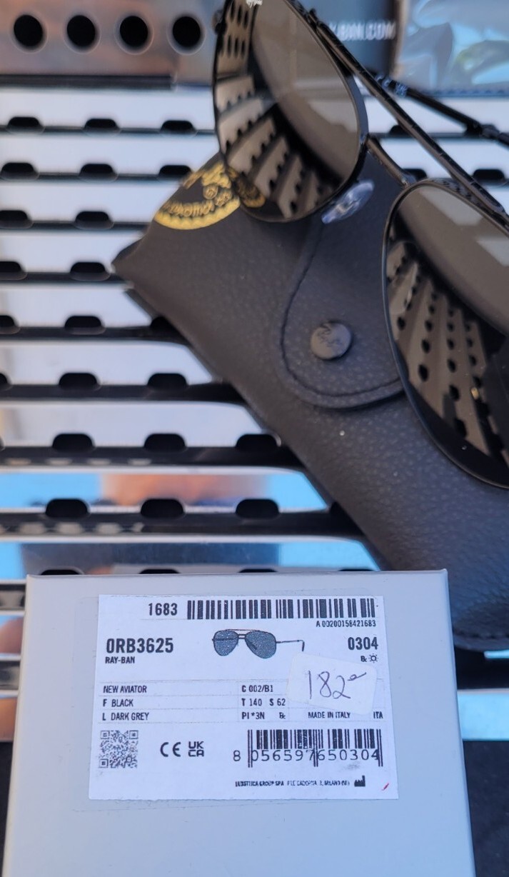 New Ray Ban RB3625 002/B1 New Aviator Sunglasses Gloss Black w/62mm Dark Gray