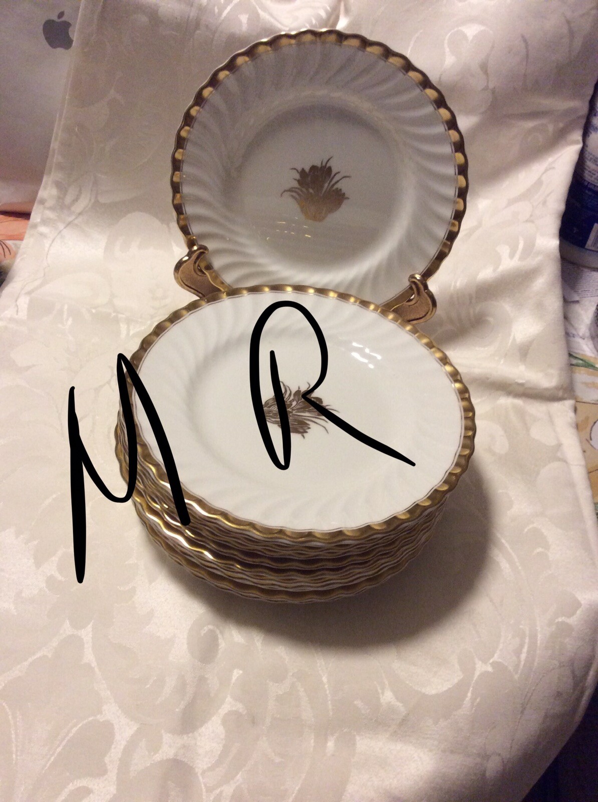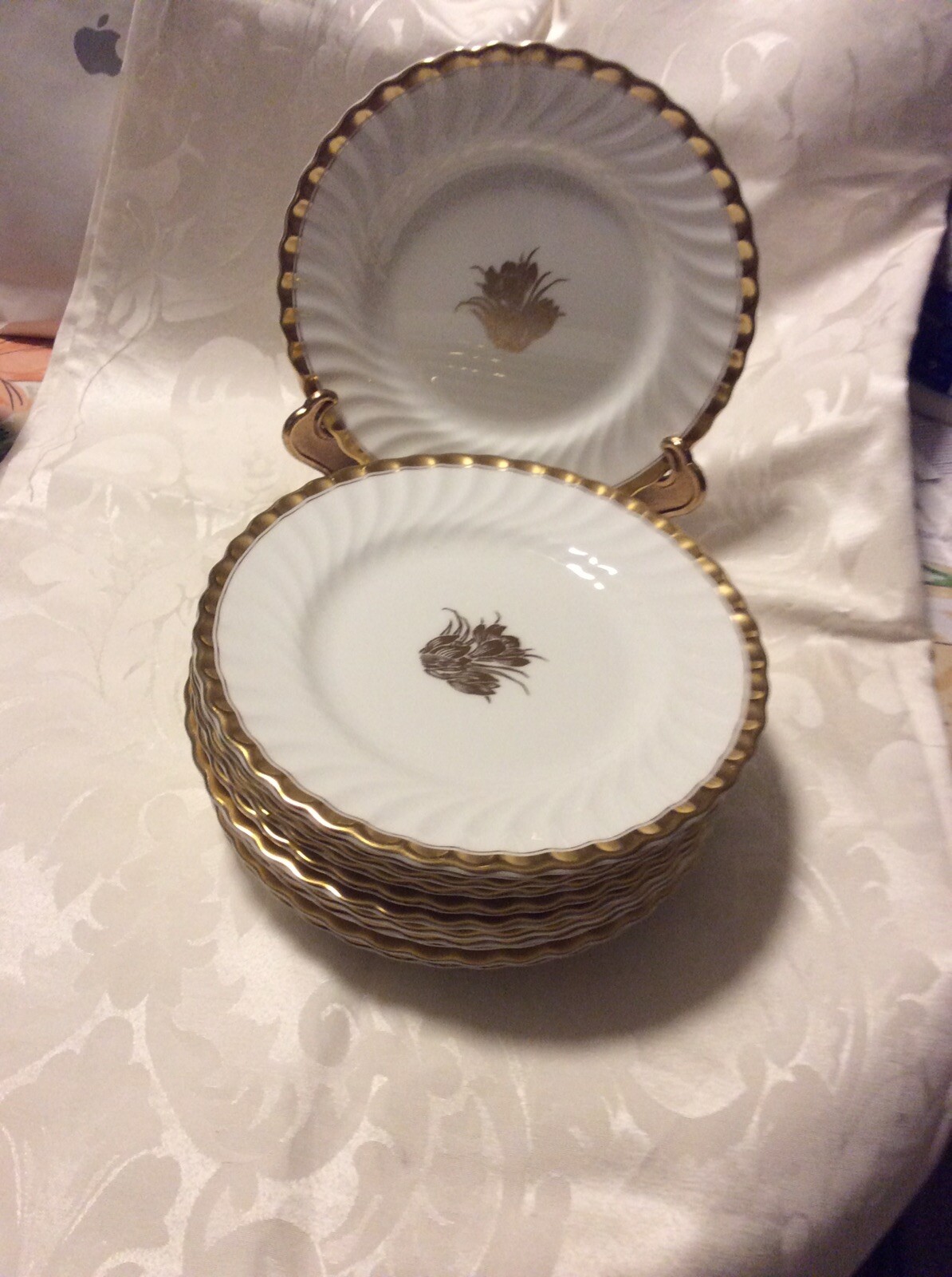 как выглядит 12 Vintage 8" Minton Gold Crocus Salad Plates - Mintons Tiffany Co Fluted фото