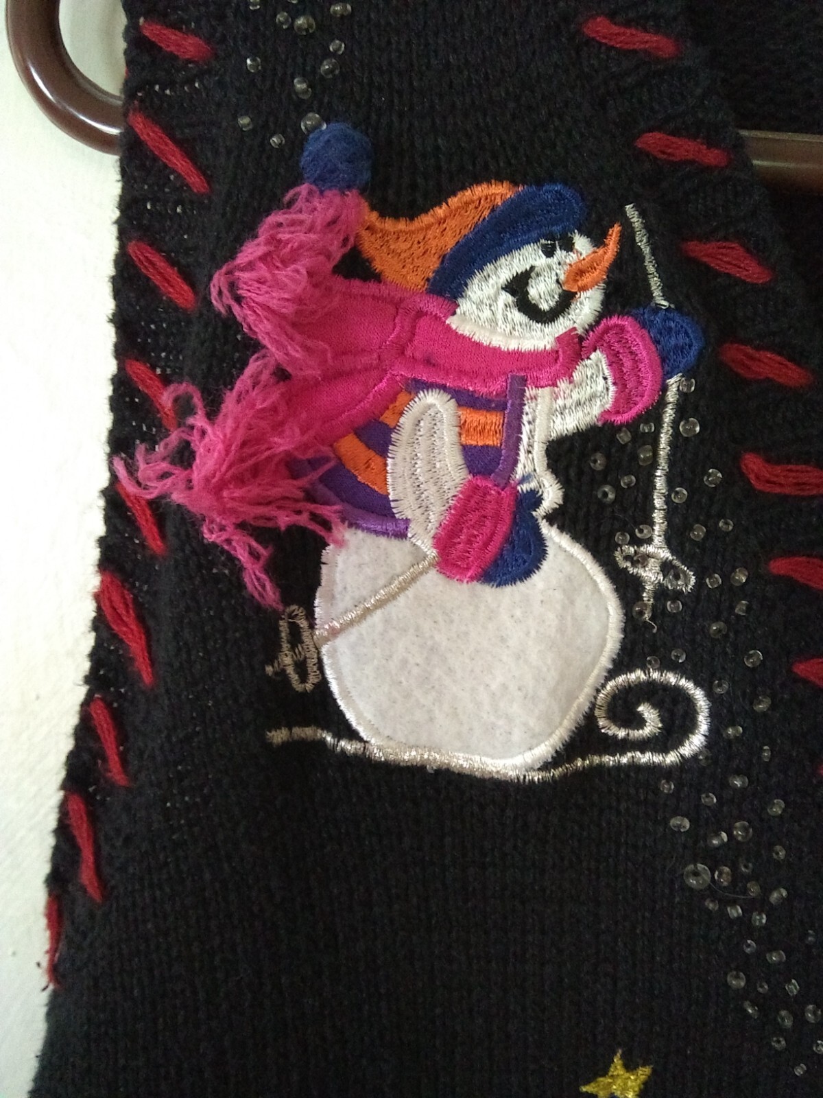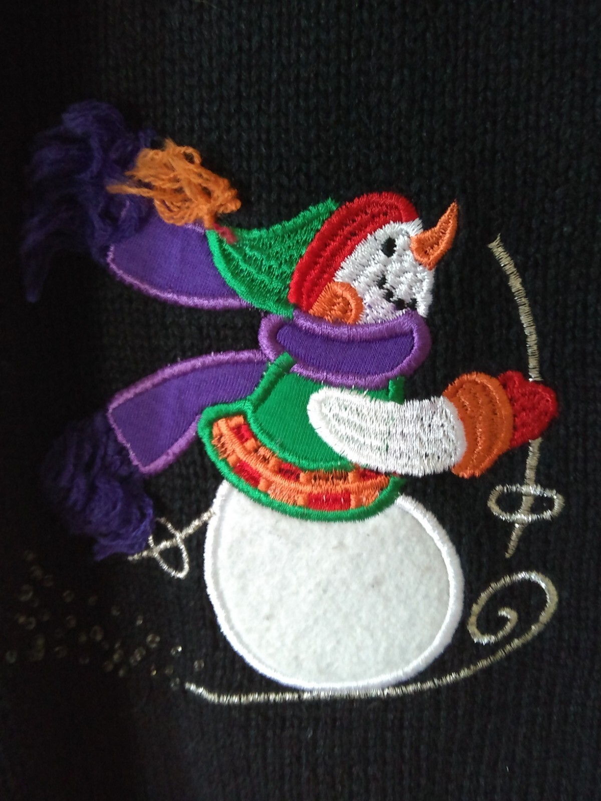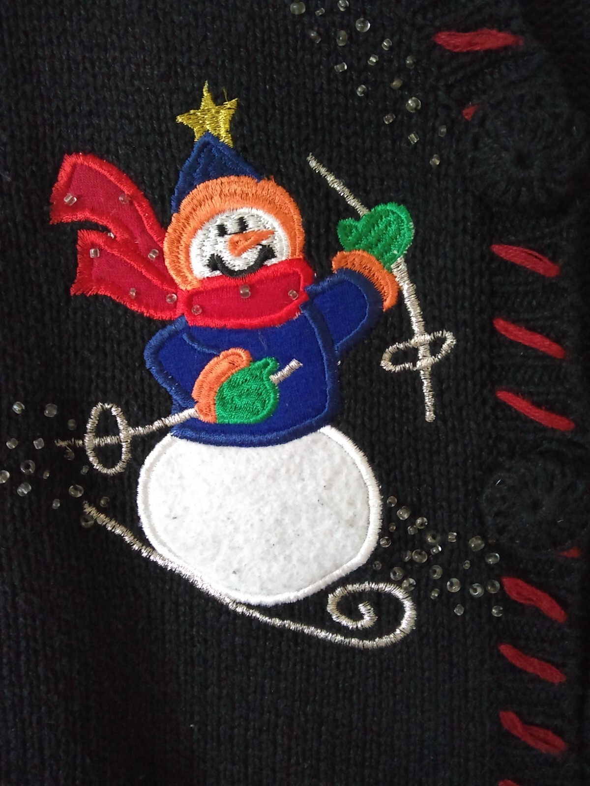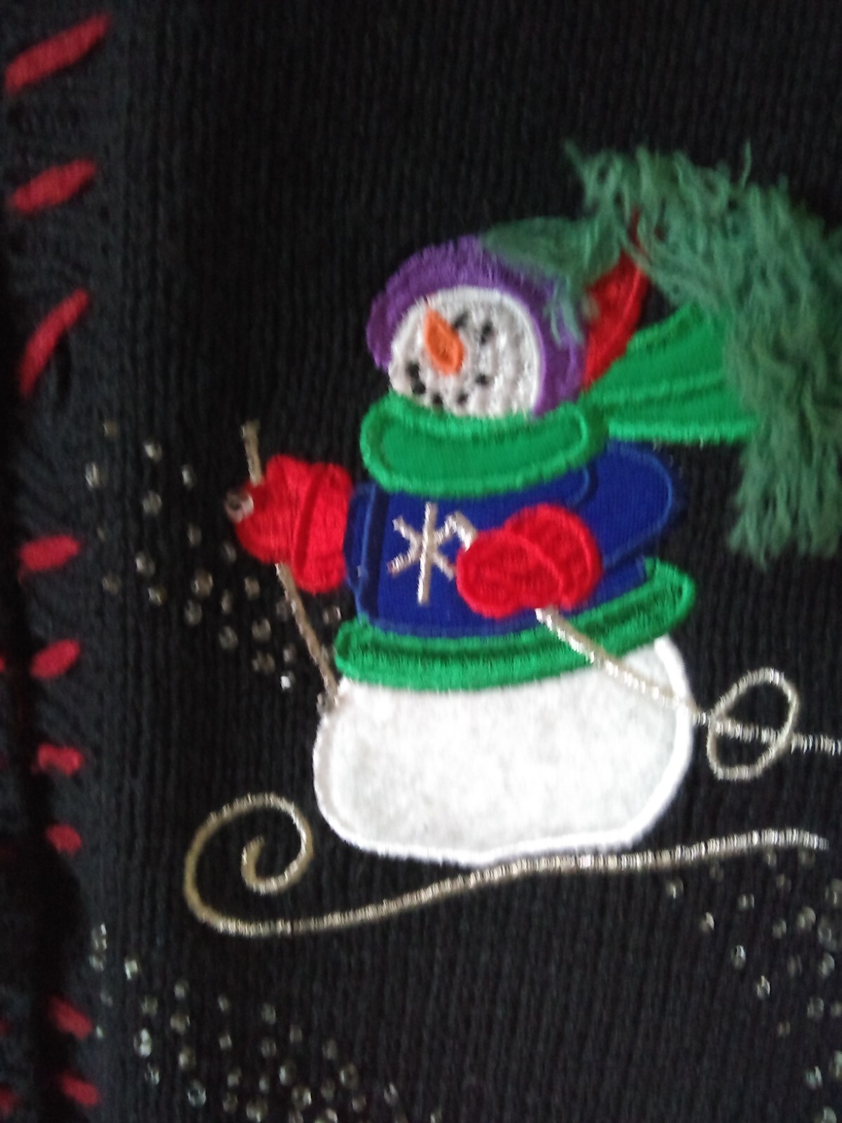 как выглядит Vintage Skiing Snowman Christmas Sweater Vest - Size estimate: medium фото