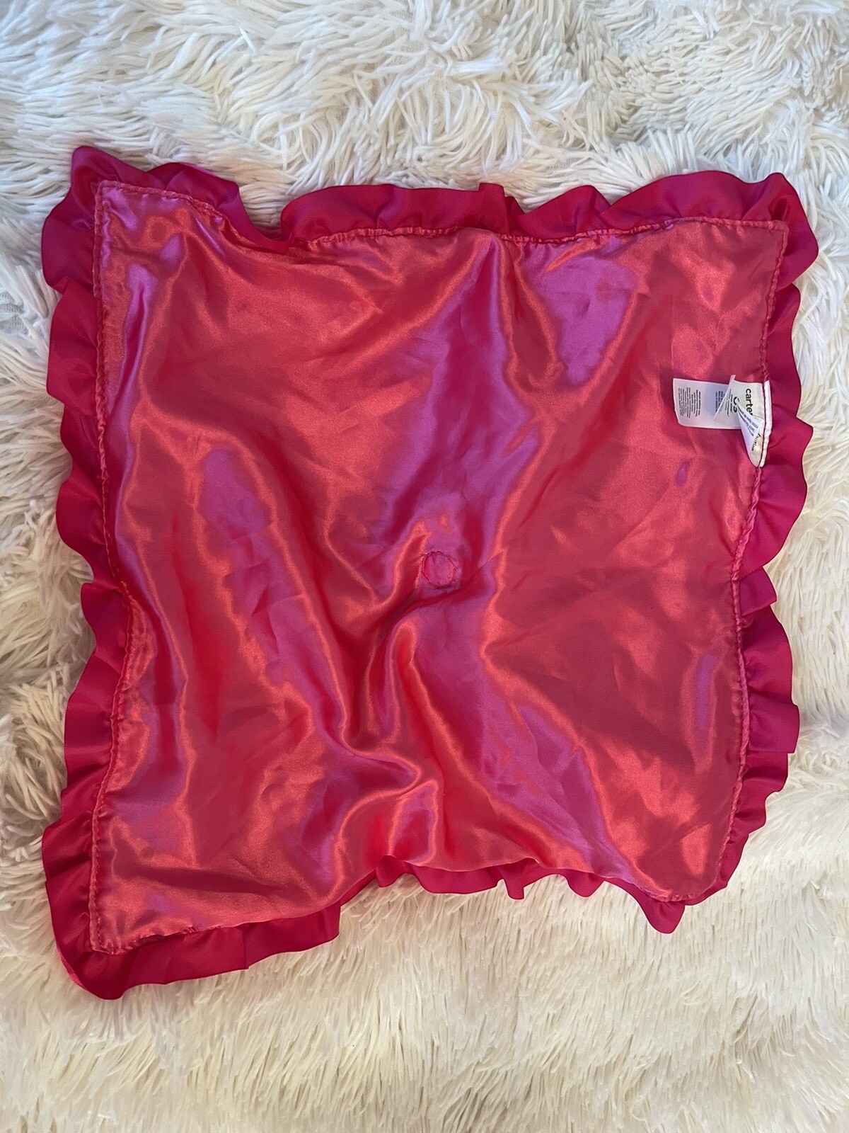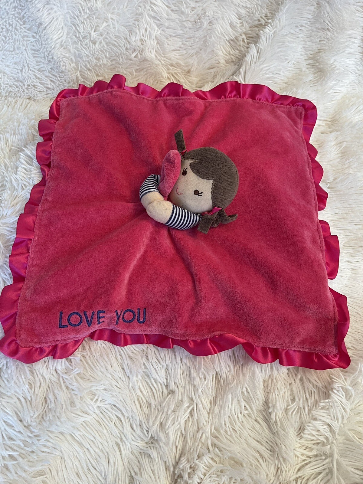 Carters Baby Doll Lovey LOVE YOU Pink Ruffle Satin Trim Blanket Rattle lovie
