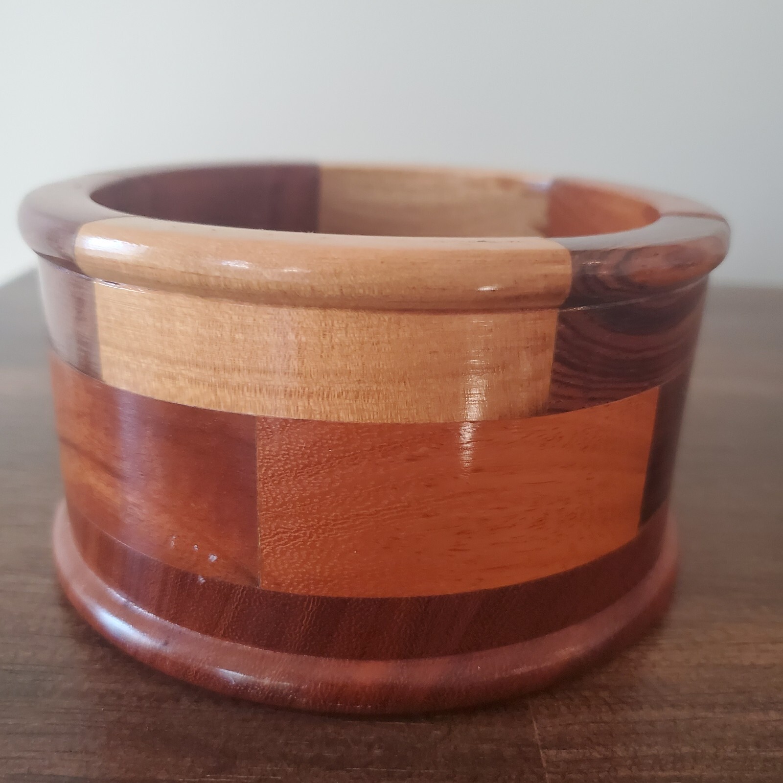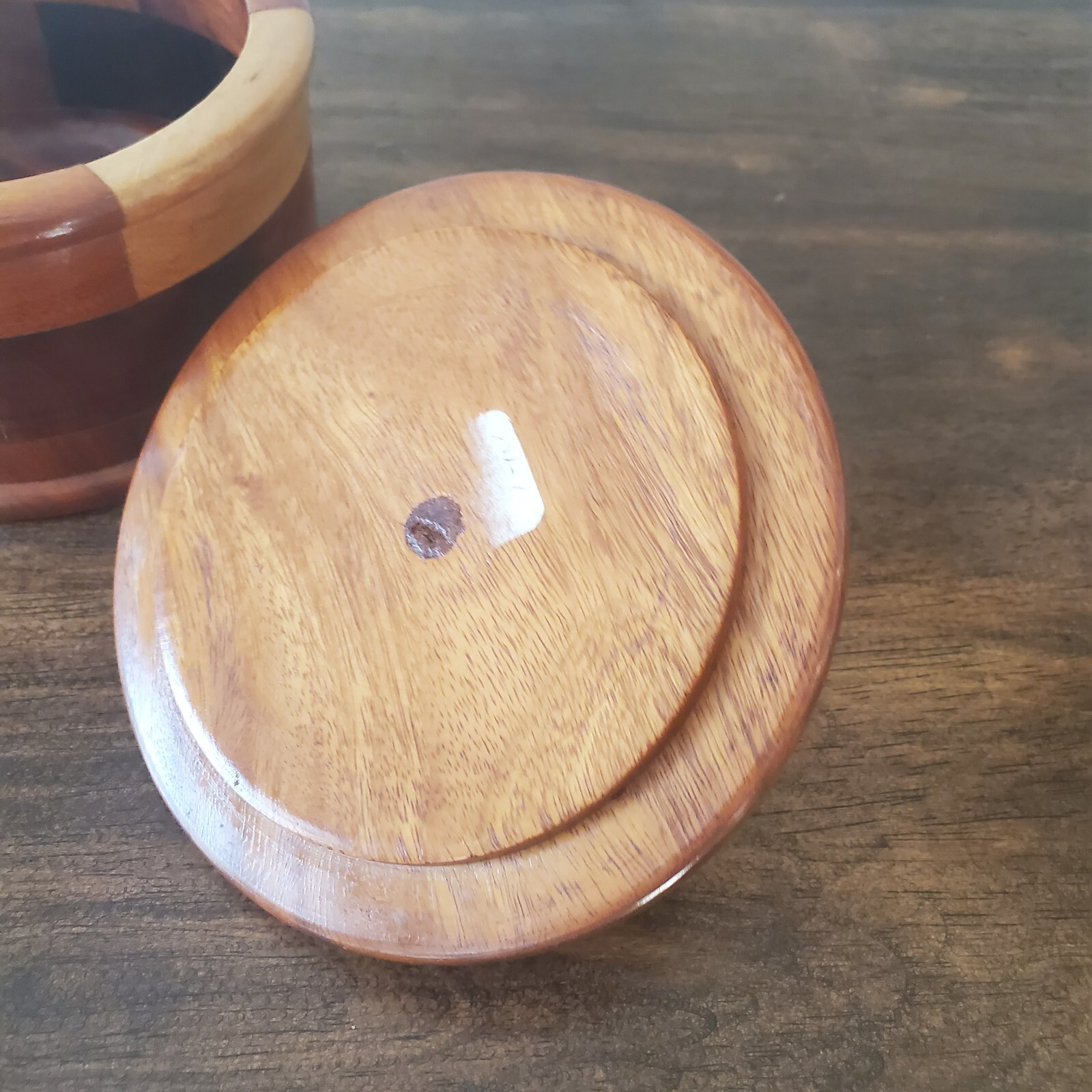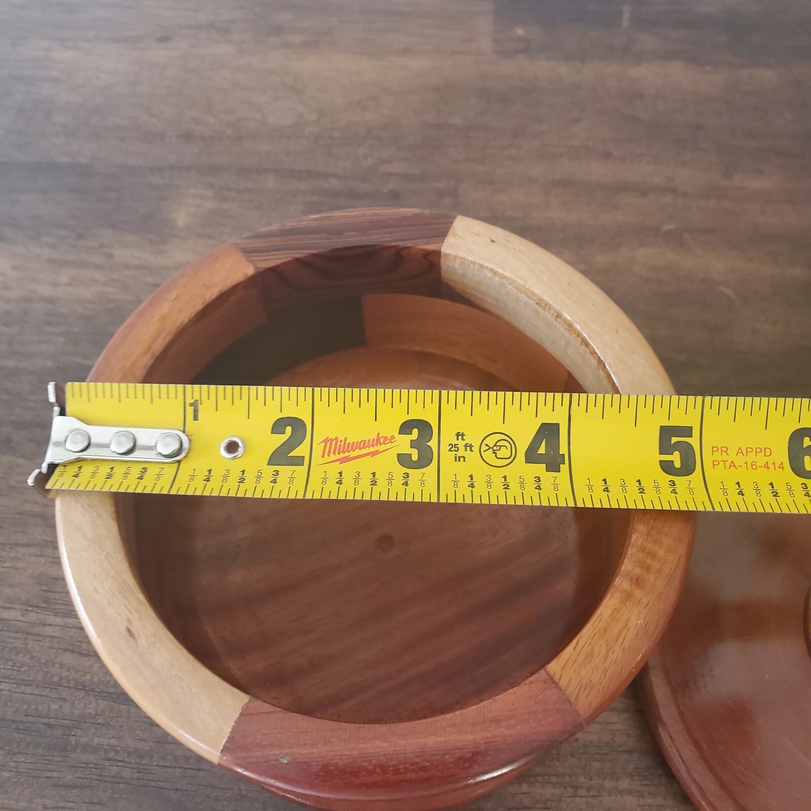 • Vintage Hand Turned Mixed Wood Bowl With Lid Inlay Trinket Box