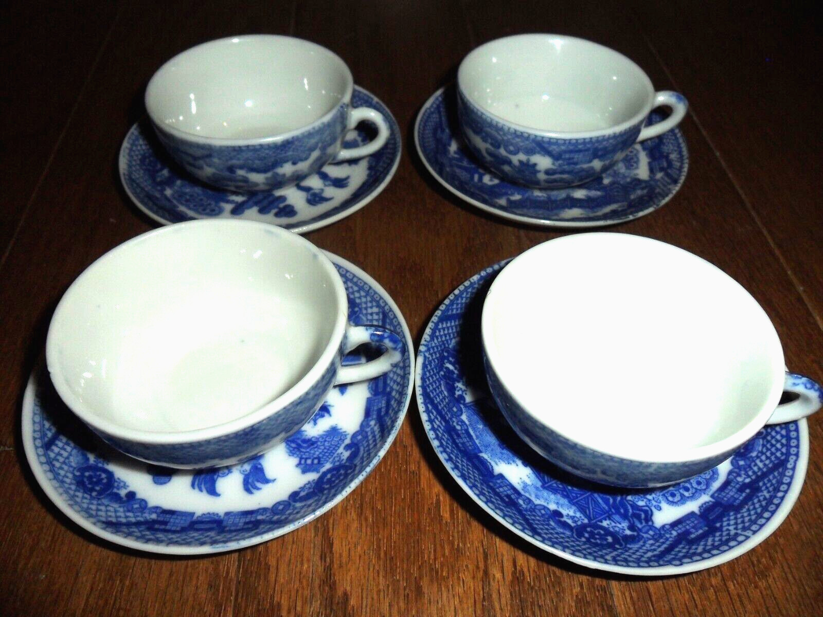 • Japan Blue Willow Porcelain Dollhouse Set of 4 Cup and 4 Saucer
