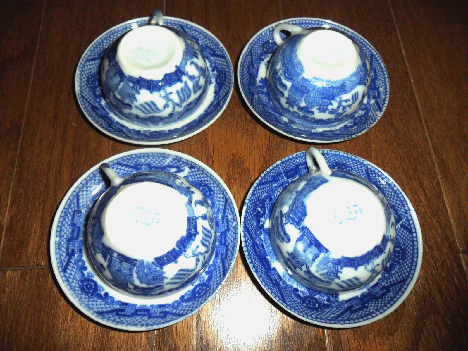 Japan Blue Willow Porcelain Dollhouse Set of 4 Cup and 4 Saucer