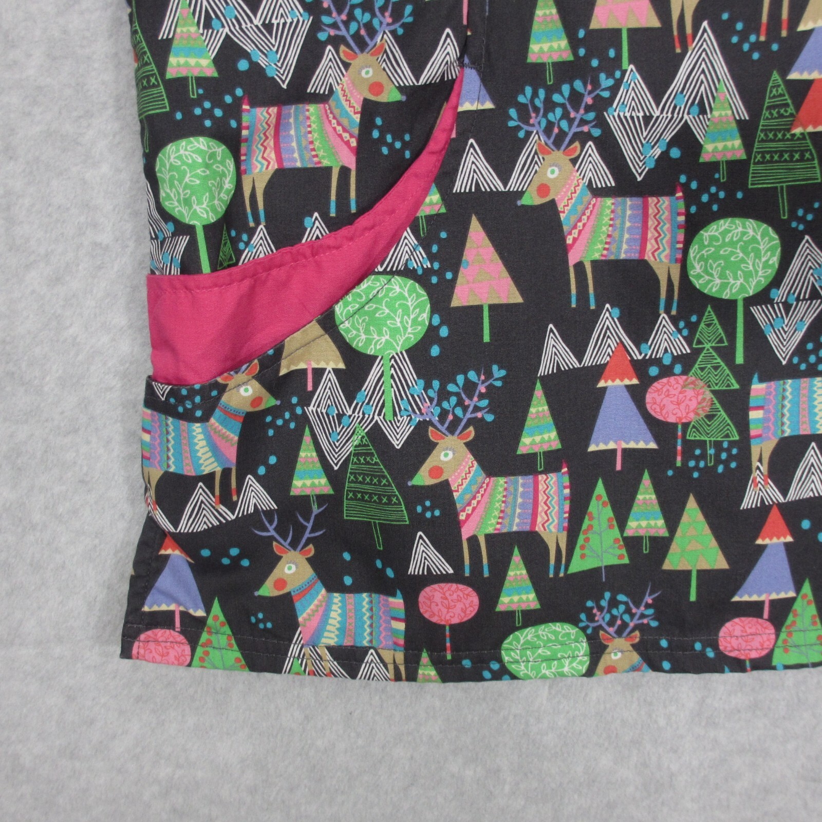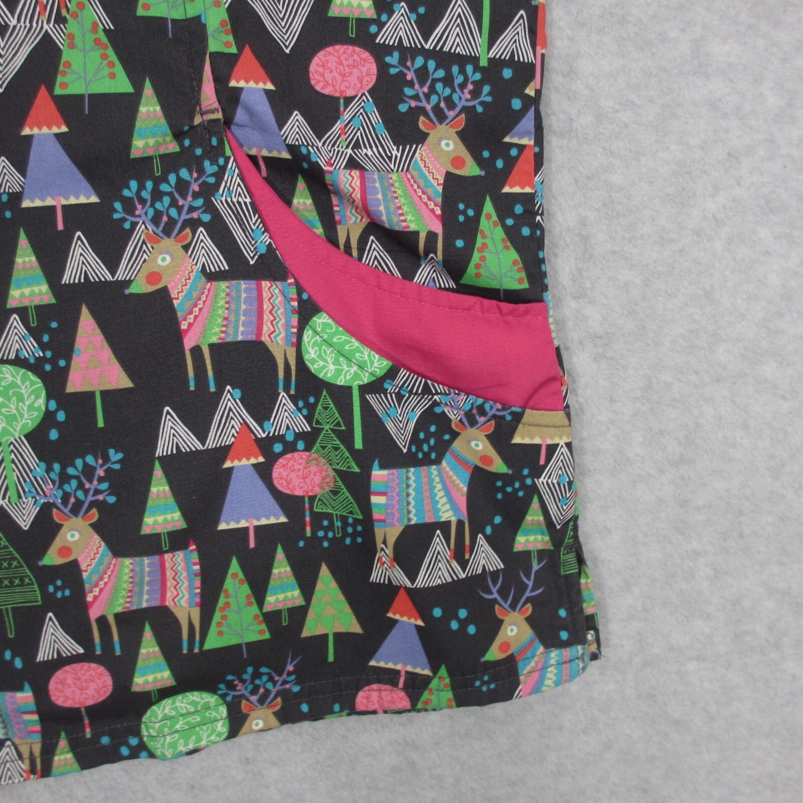 UA Scrubs Women's Scrub Top Black Christmas Tree Reindeer Medical Nurse Vet