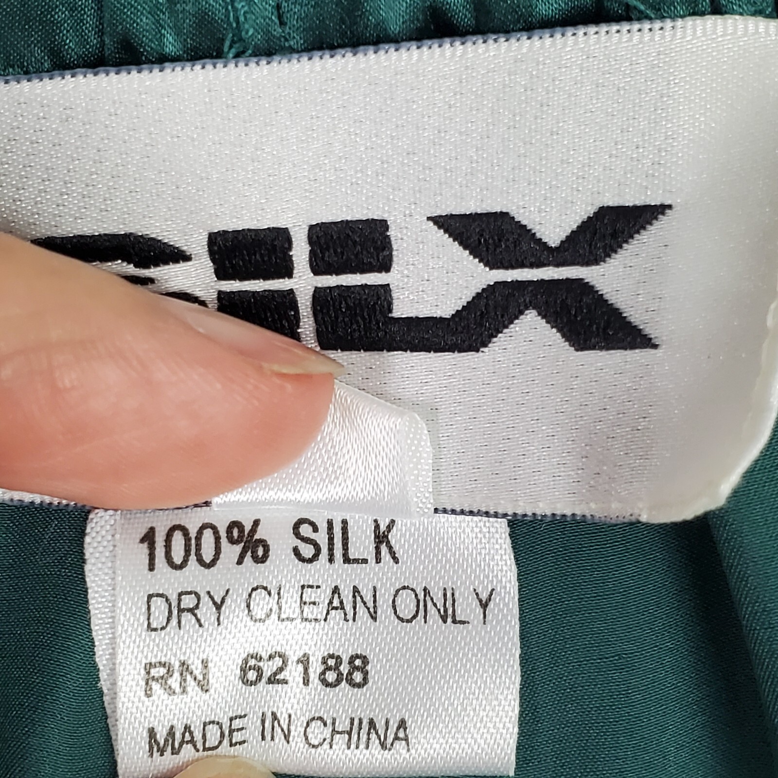Vintage SILX Womens Silk Pants 8 Green Satin High Rise Tapered Leg Soft Flowy