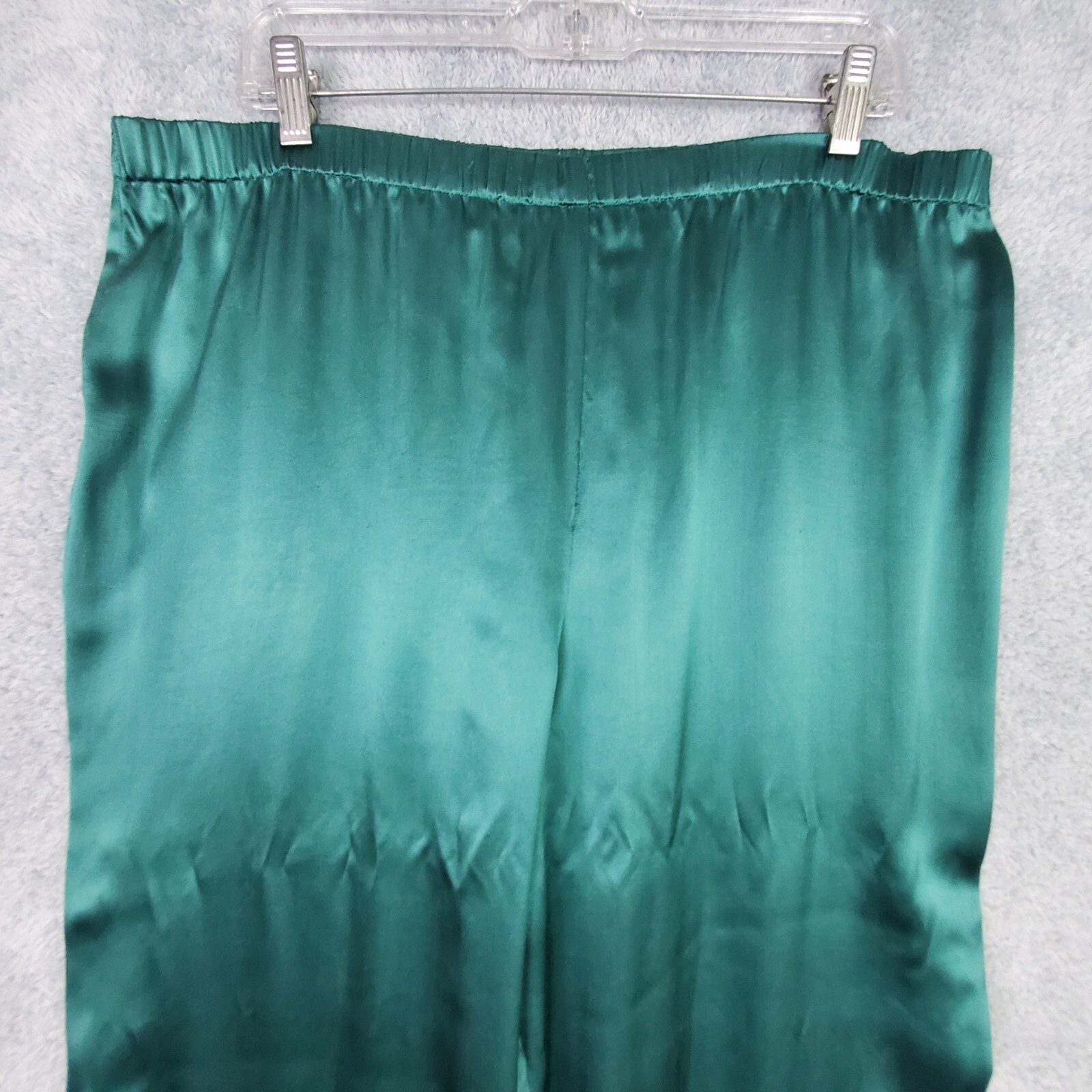 как выглядит Vintage SILX Womens Silk Pants 8 Green Satin High Rise Tapered Leg Soft Flowy фото
