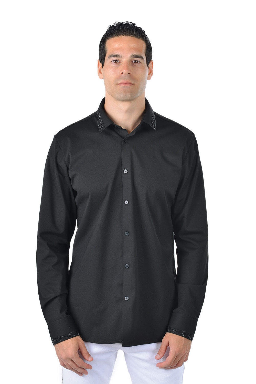 Barabas Men's Rhinestone Greek key Pattern Long Sleeves Shirts BR100