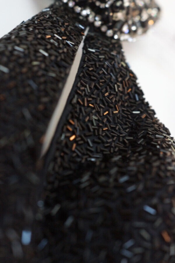 Accents: Cut out, Hemmed to fit 5' 5" wearing Heels, Beaded