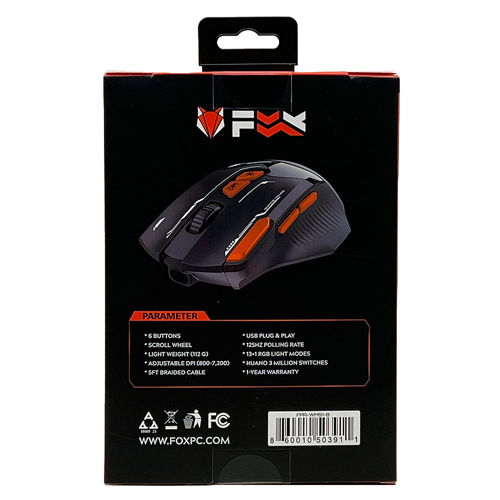 как выглядит FOX PC RGB Wired Optical Gaming Mouse 7200 DPI Lightweight Ergonomic - BLACK фото