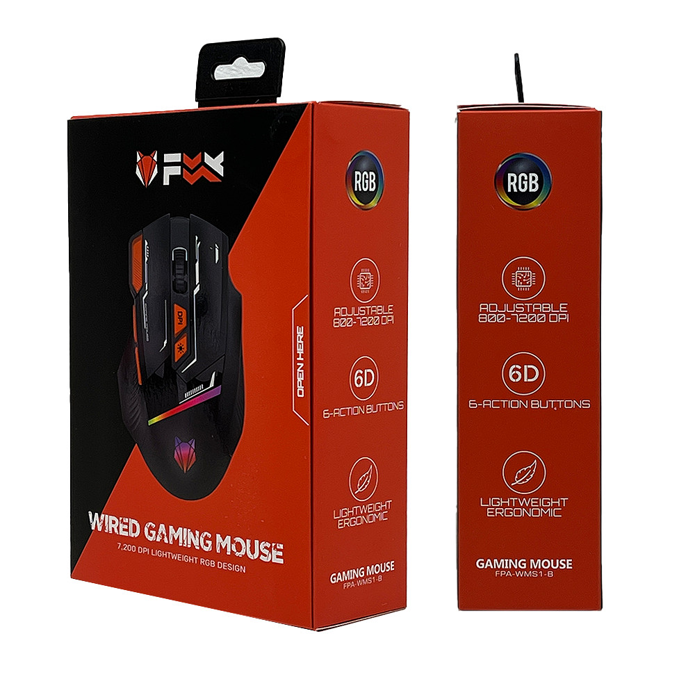 FOX PC RGB Wired Optical Gaming Mouse 7200 DPI Lightweight Ergonomic - BLACK