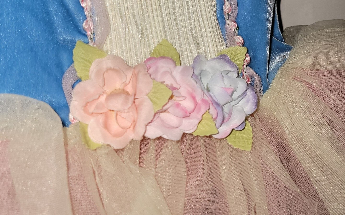 CURTAIN CALL blue Pink Stretch Velvet Tulle Flower Tutu Ballet Costume. Childs S