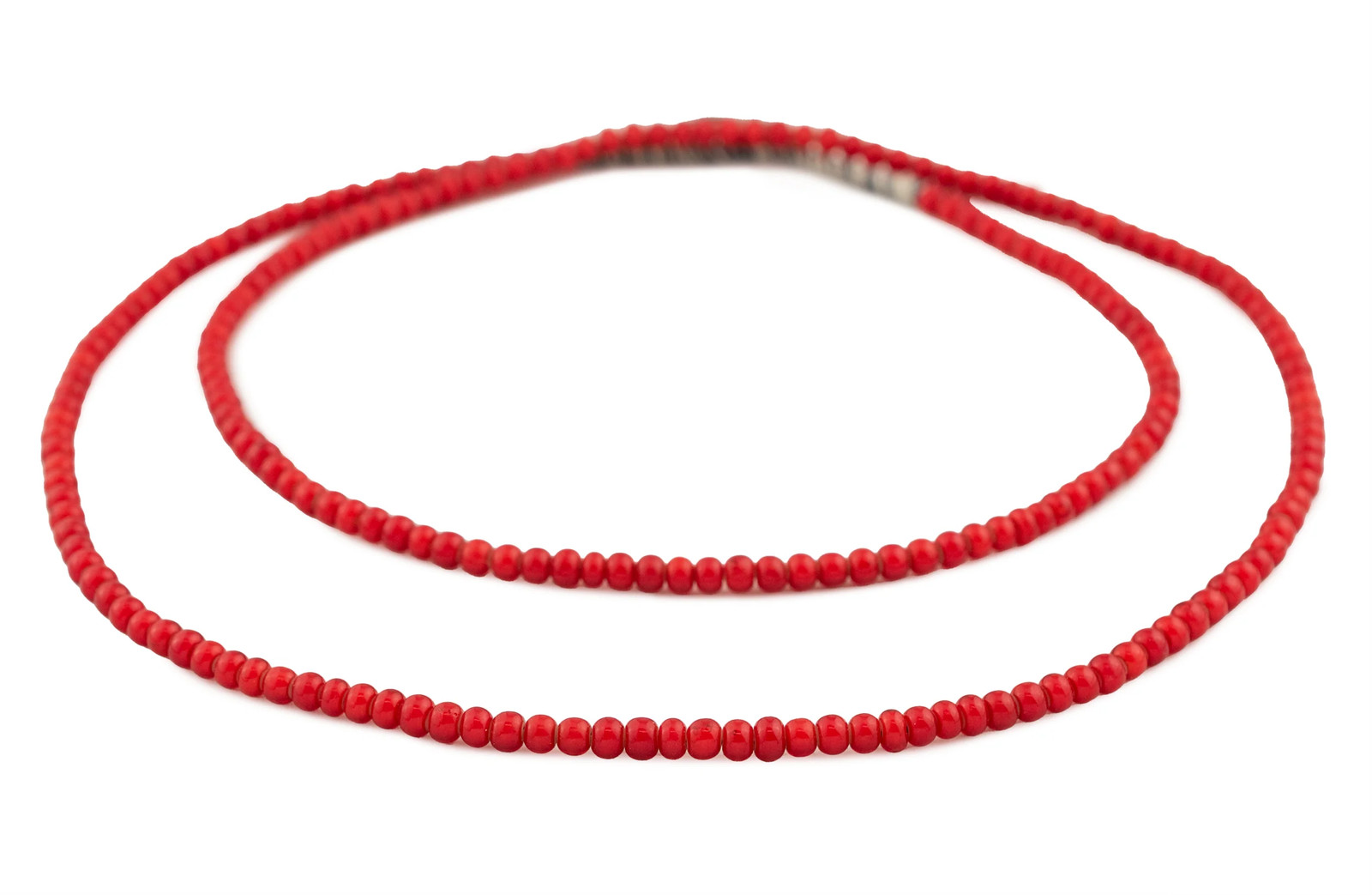 Red White Heart Beads 4mm Ghana African Seed Glass 24-26 Inch Strand Handmade