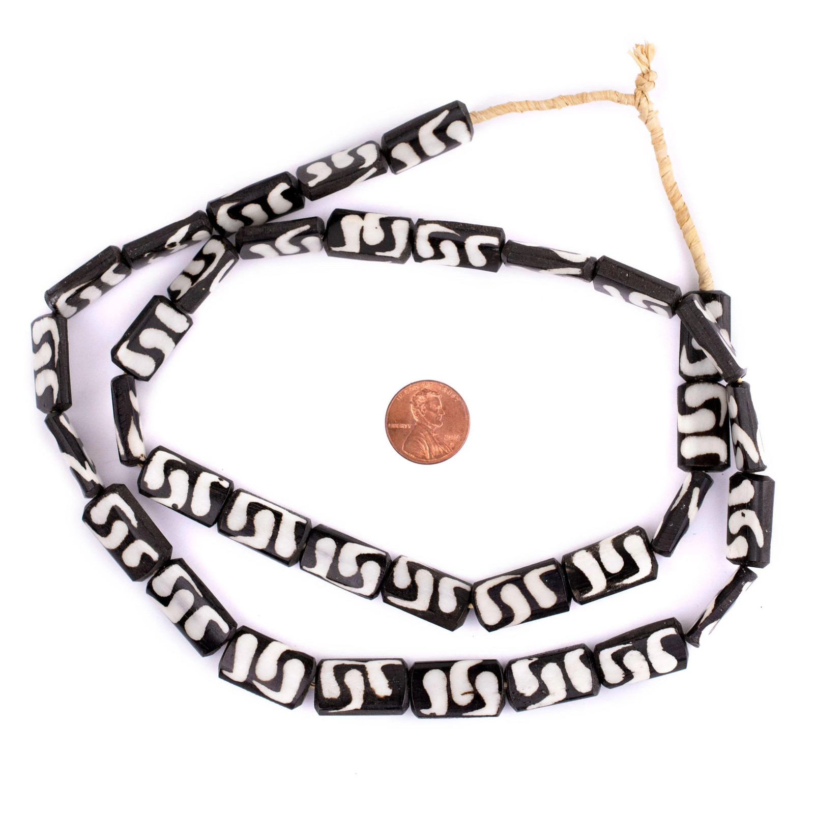 Swirl Design Batik Bone Beads Rectangular 12mm Kenya African Black and White