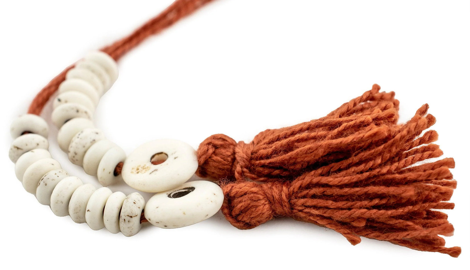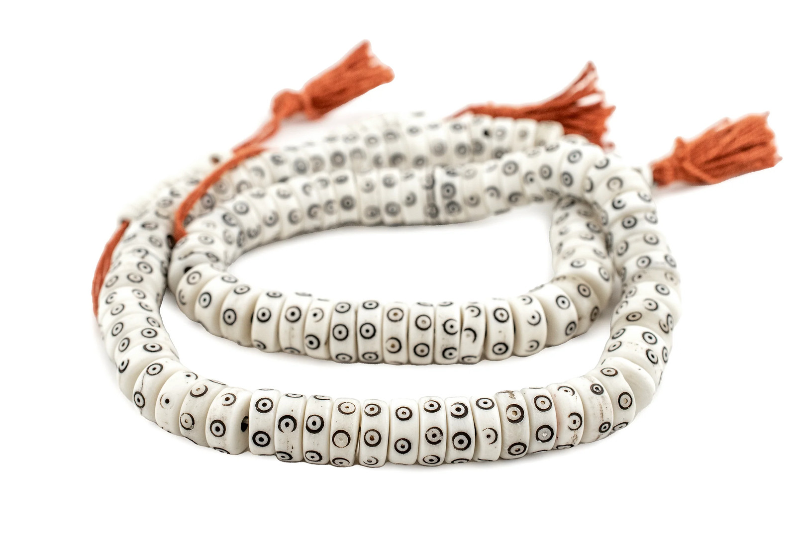 White Carved Eye Disk Bone Mala Beads 12mm Nepal Large Hole 22 Inch Strand