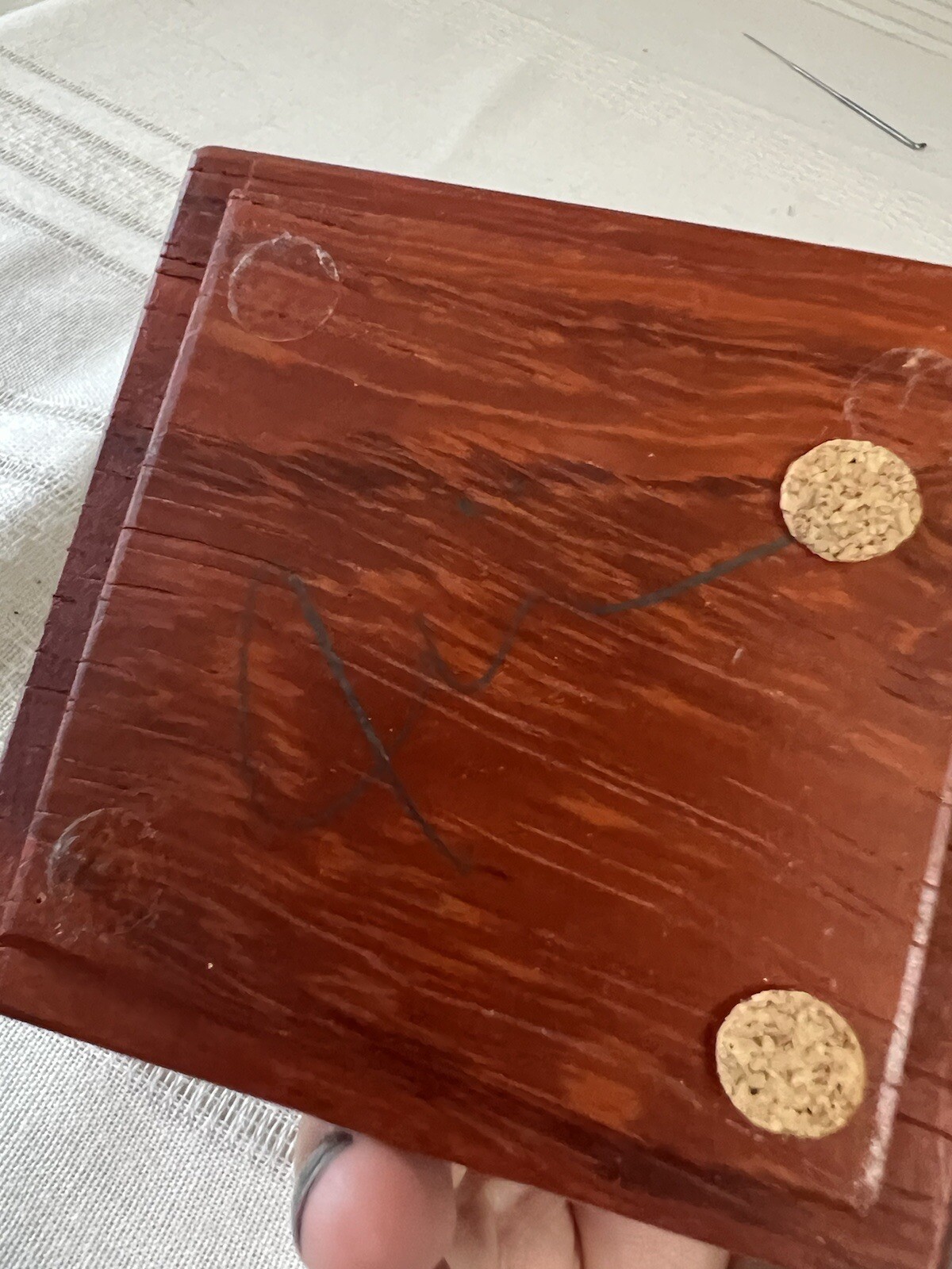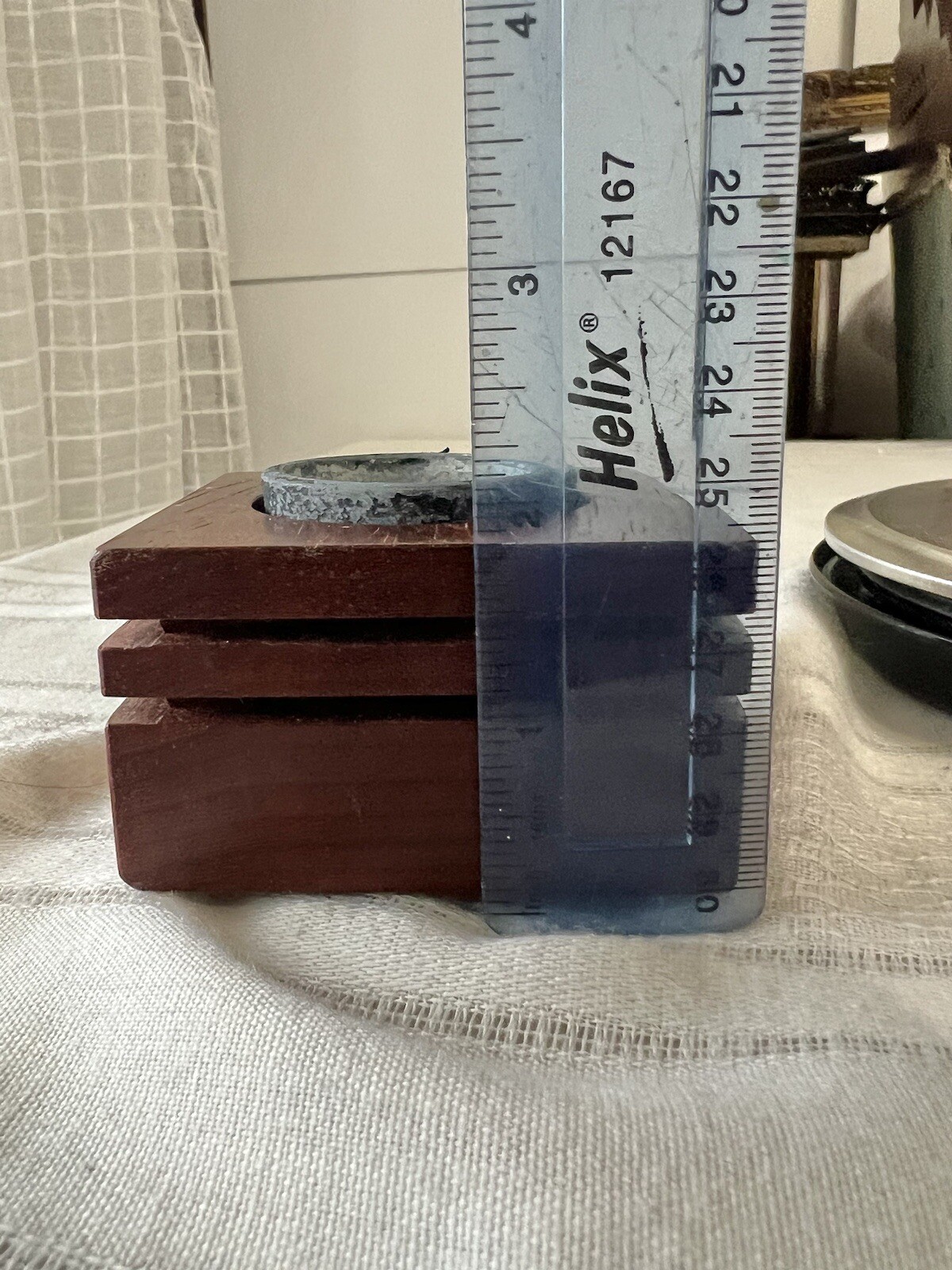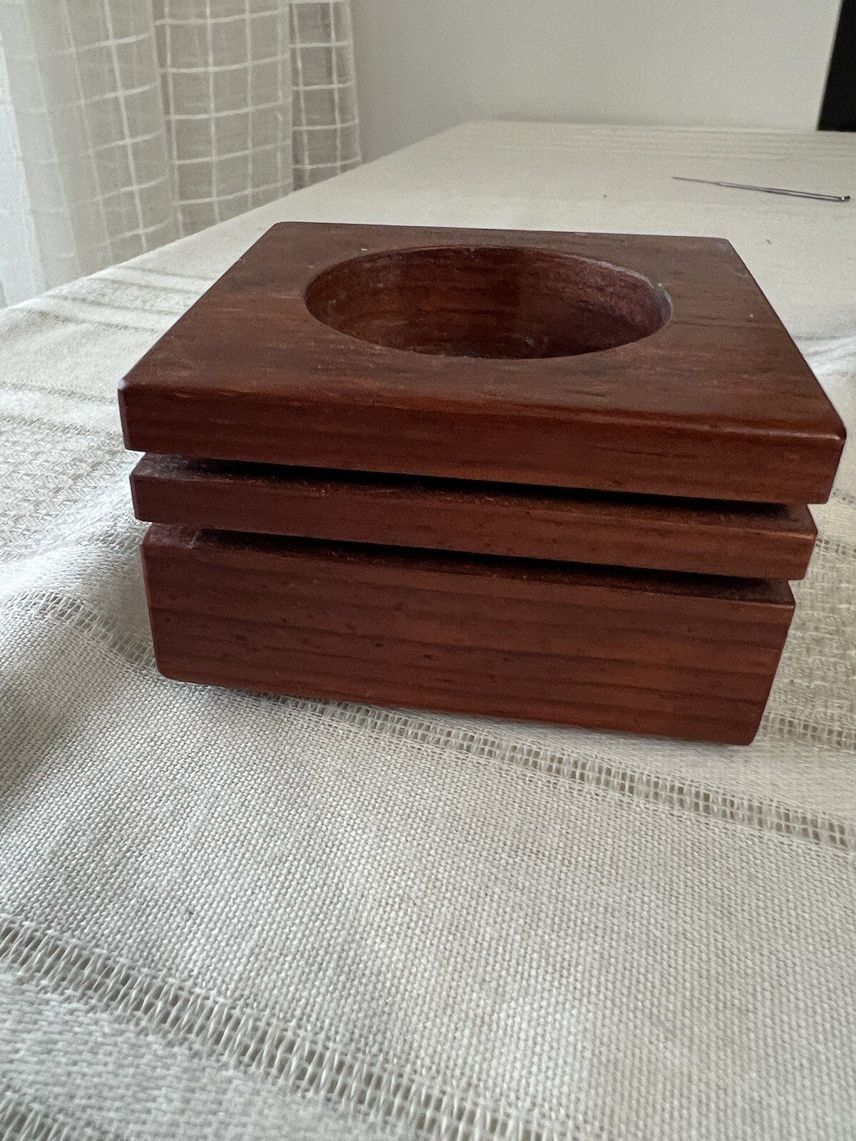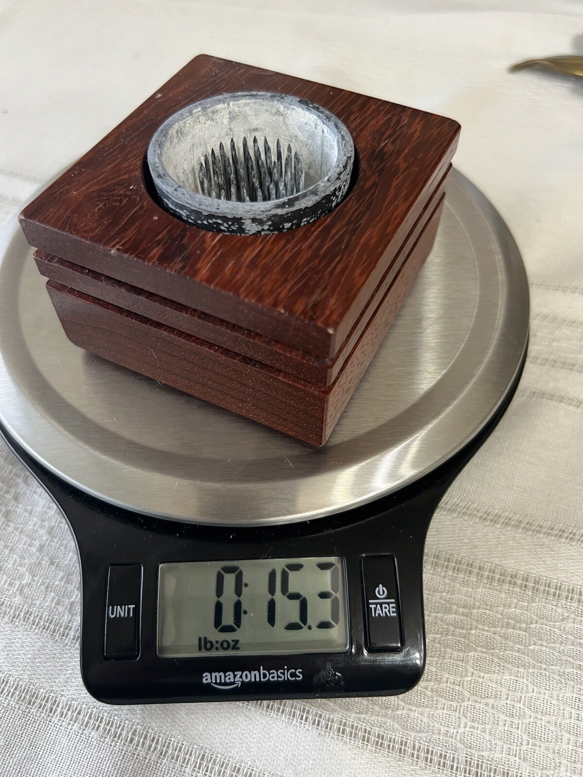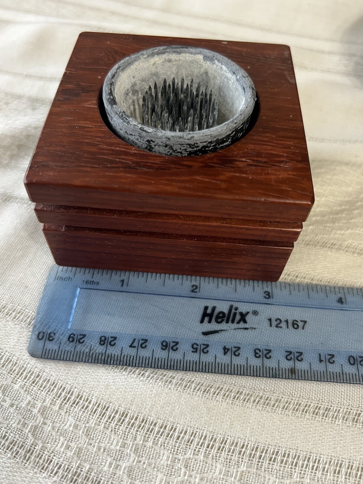 Vintage all Lead spiked Needle Flower Frog Ikebana In Wood Base
