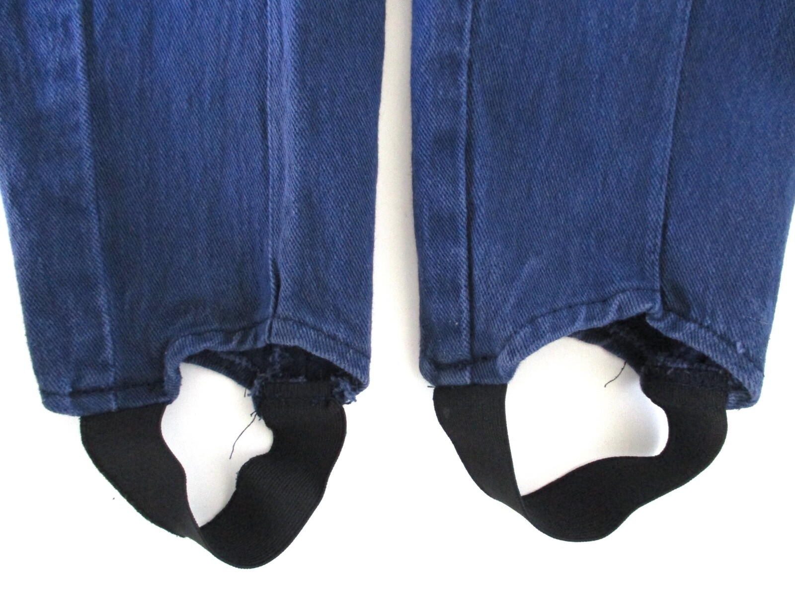как выглядит Vtg 80s Stretch Dark Denim Taper Leg Stirrup Jeans High Mom Waist Side Zip 10 фото