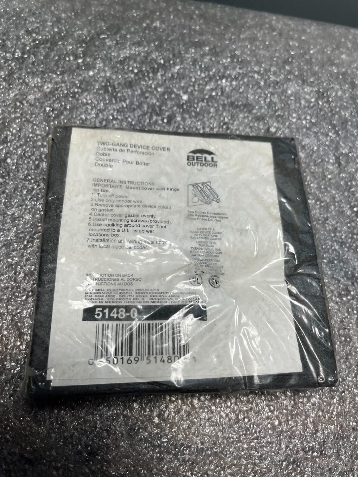 как выглядит NEW IN BAG Bell Outdoor Wet Location Two-Gang Outlet Cover Plate 5148-0 фото