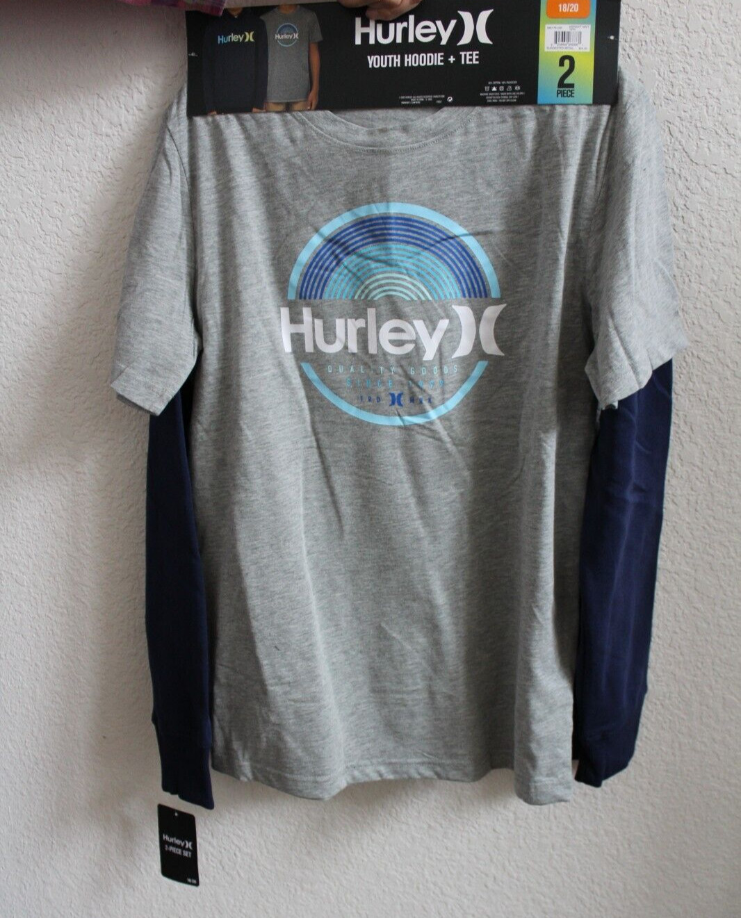 как выглядит Hurley  Boys Hoodie T-Shirt  2-Piece Set  Navy/Gray  Size Youth 18/20 фото
