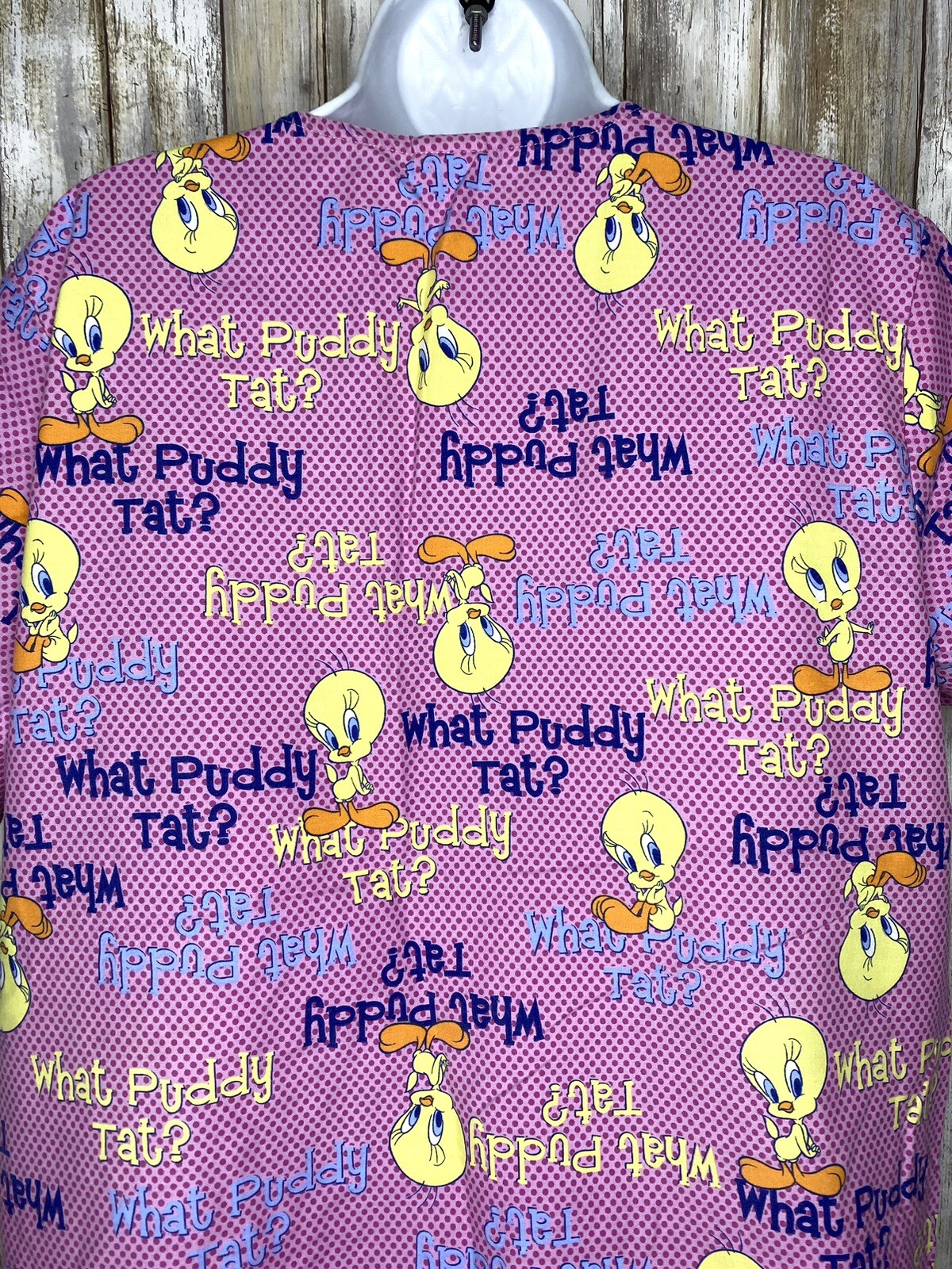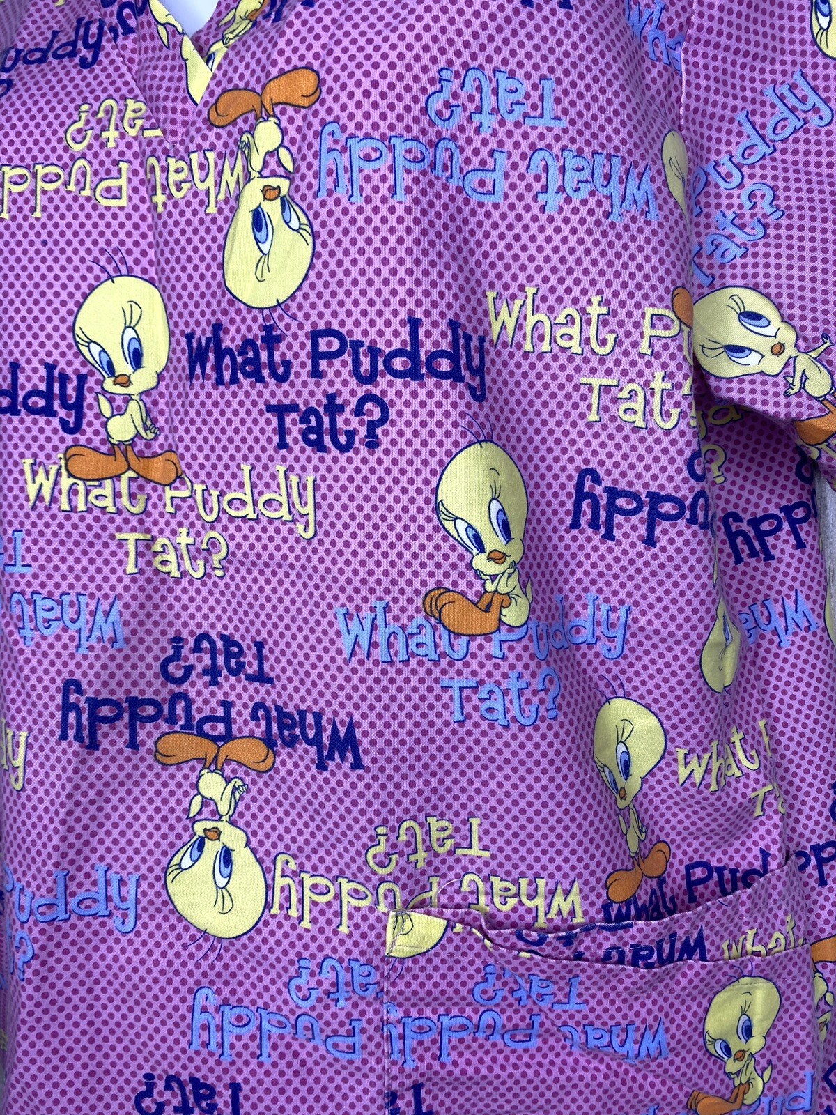 Womens Scrub Top Looney Tunes Tweety Bird Size Medium