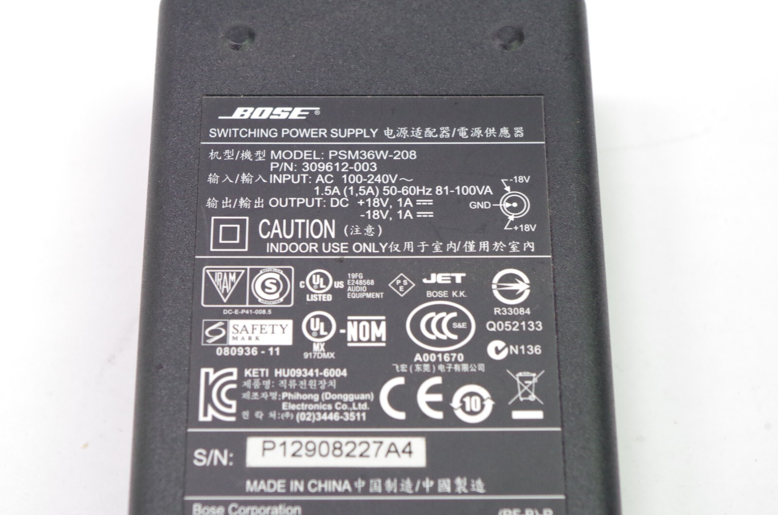 Bose Sounddock I Power Adapter Supply PSM36W-208 Series 1 Charger