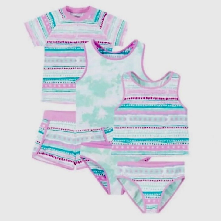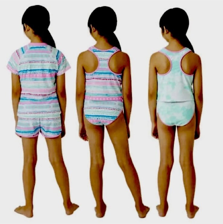 как выглядит Eddie Bauer Youth Sz 14/16 Reversible 4-piece Swim Set , Pink Multi Color фото