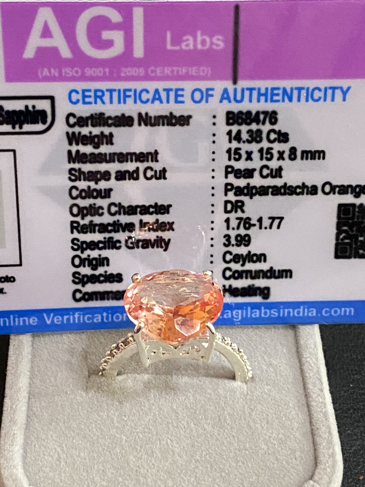 как выглядит Pear 14.38 Ct Padparadscha Orange Sapphire Gemstone Ring New Year