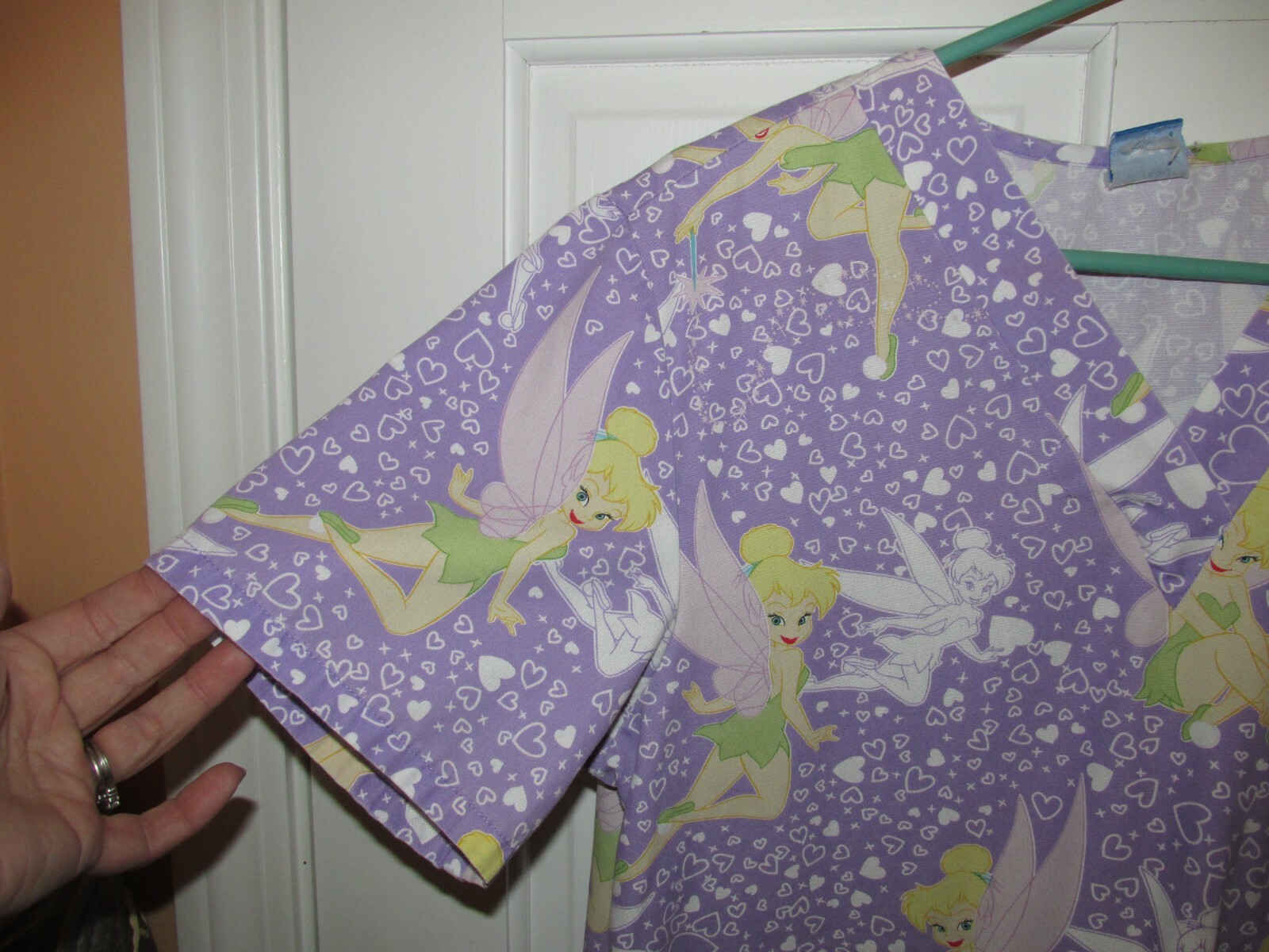 как выглядит Disney Womens Tinkerbelle Purple Graphic Print Medical Nursing Scrub Top Size S фото
