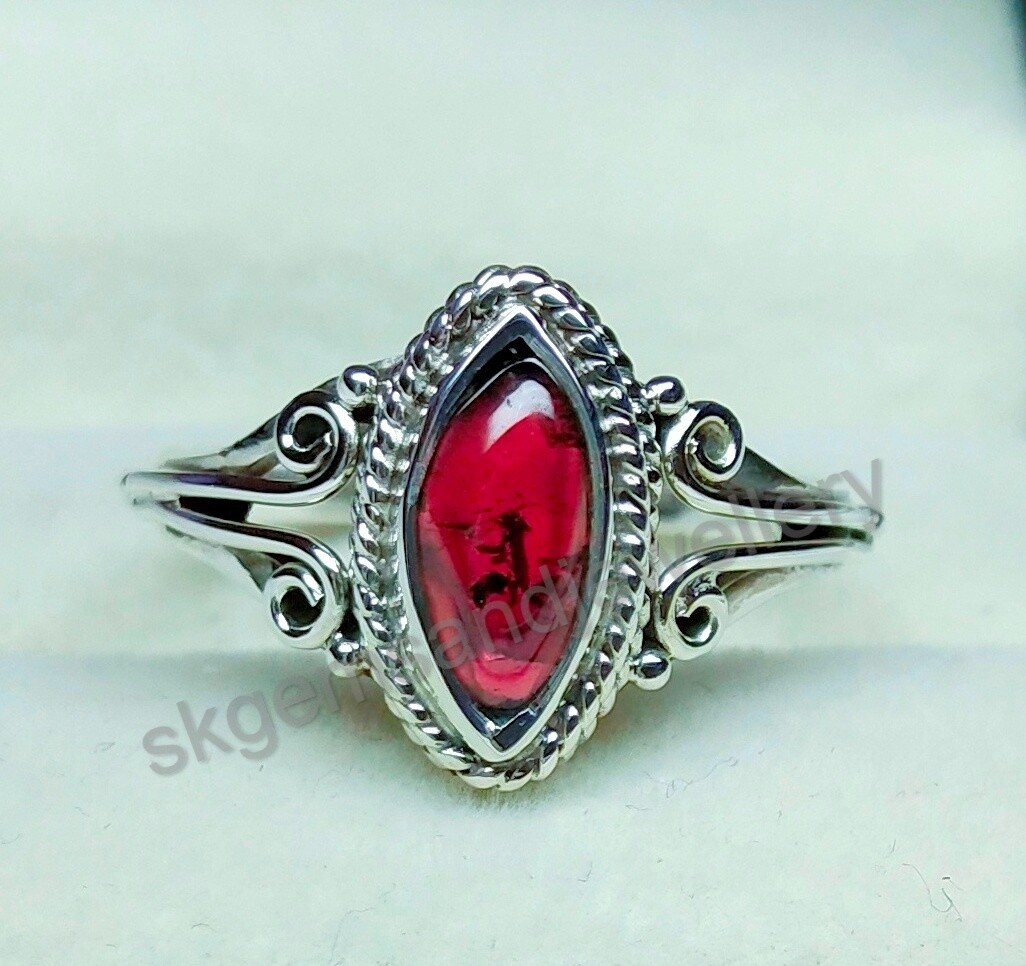 Natural Red Garnet Ring 925 Sterling Silver Ring Handmade Fine Ring All Size