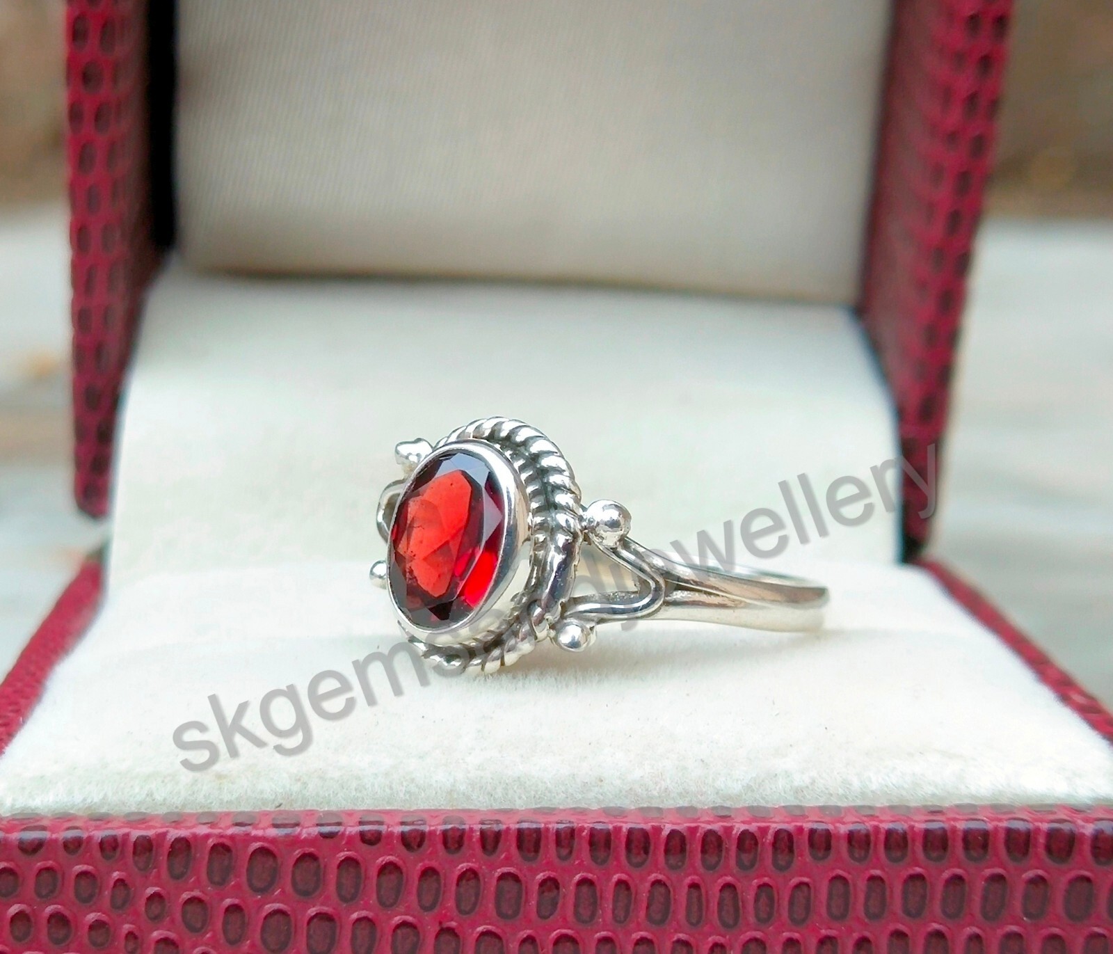 Natural Red Garnet Ring 925 Sterling Silver Ring January Birthstone Ring