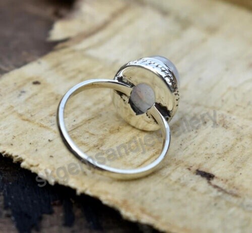 как выглядит Natural Rainbow Moonstone Ring 925 Sterling Silver Promise Ring For Her фото