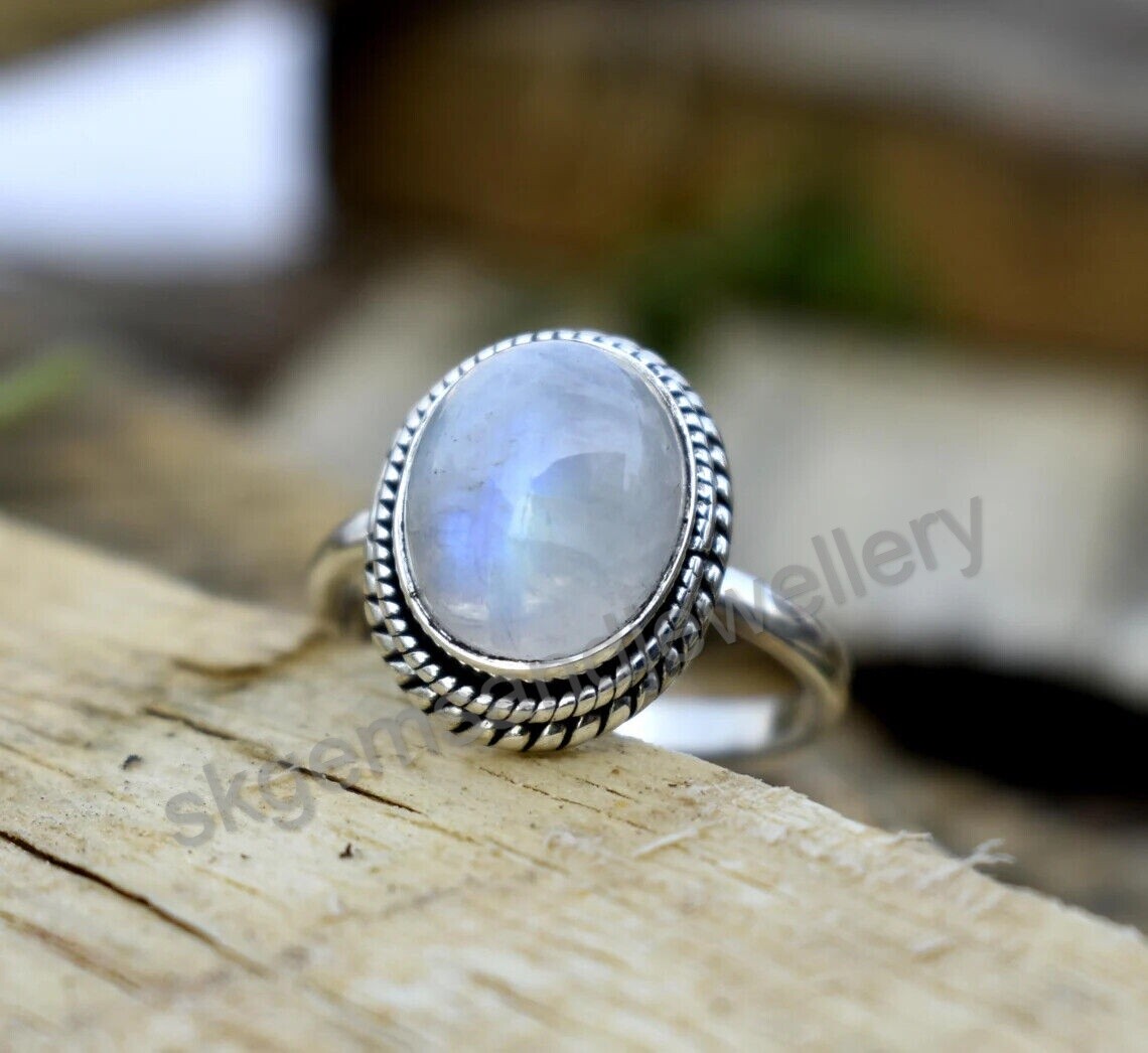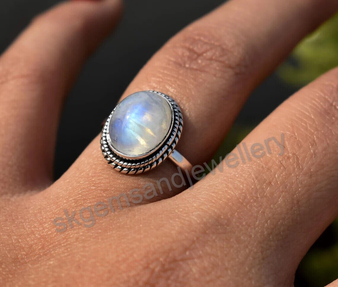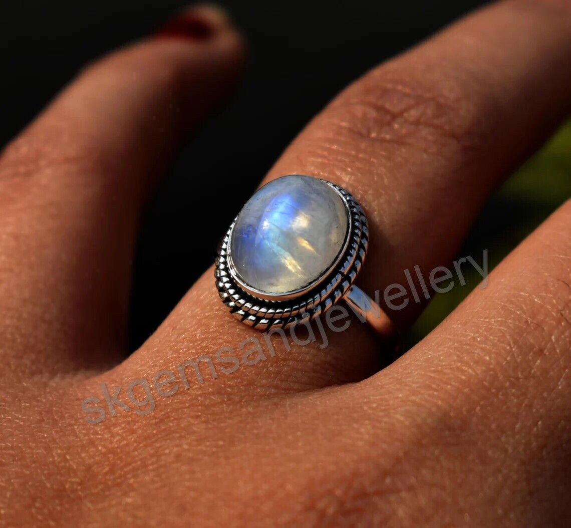 Natural Rainbow Moonstone Ring 925 Sterling Silver Promise Ring For Her