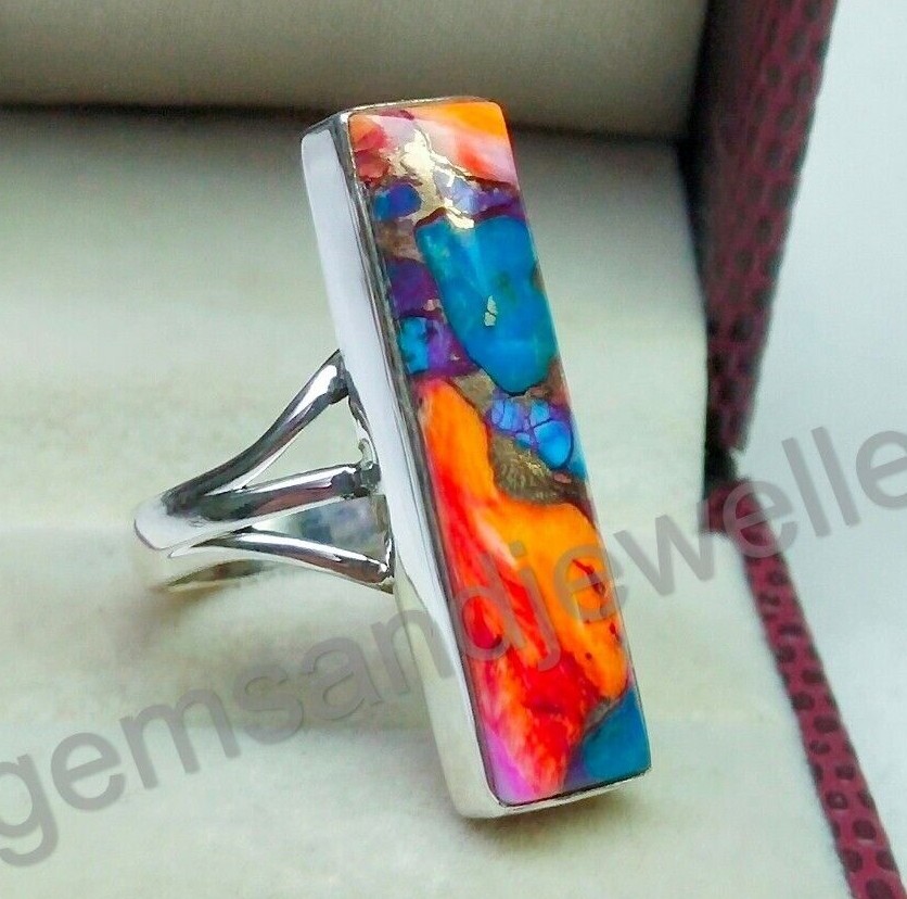 Spiny Oyster Turquoise Ring 925 Sterling Silver Handmade Ring For Her All Size