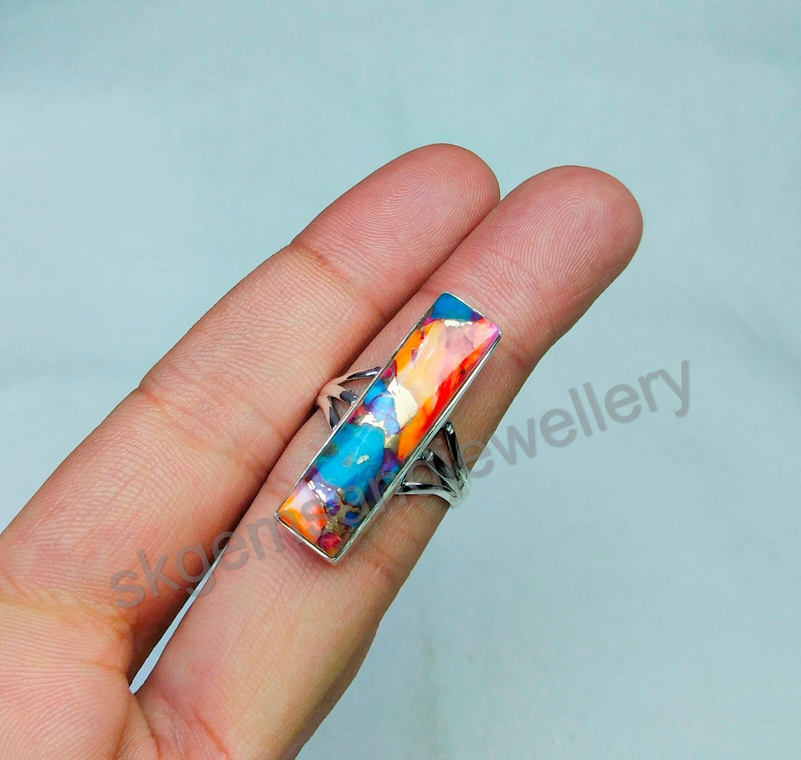 как выглядит Spiny Oyster Turquoise Ring 925 Sterling Silver Handmade Ring For Her All Size фото