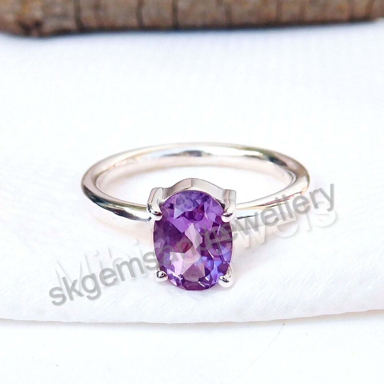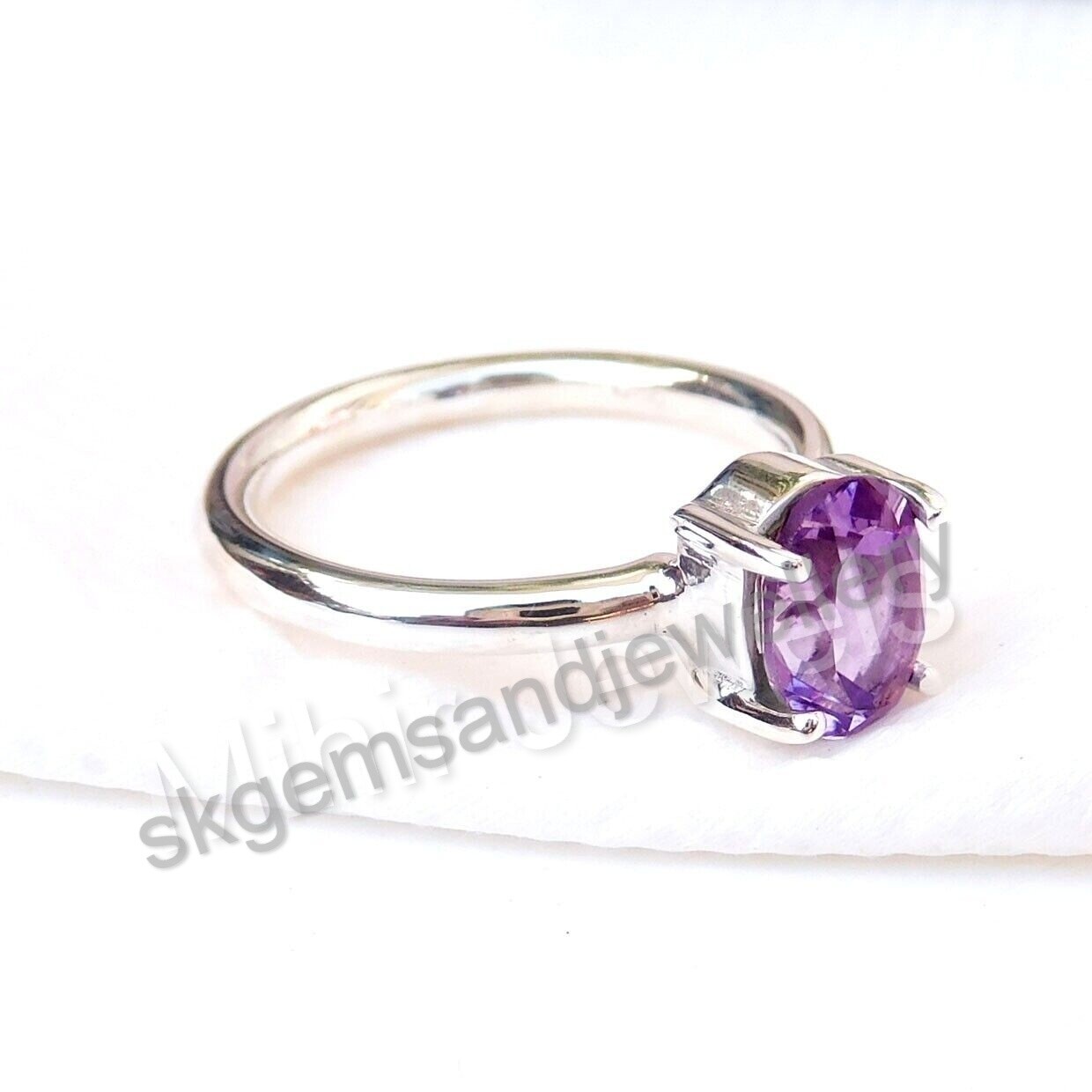 как выглядит Natural Amethyst Oval Gemstone 925 Sterling Silver Handmade Fine Ring All Size фото
