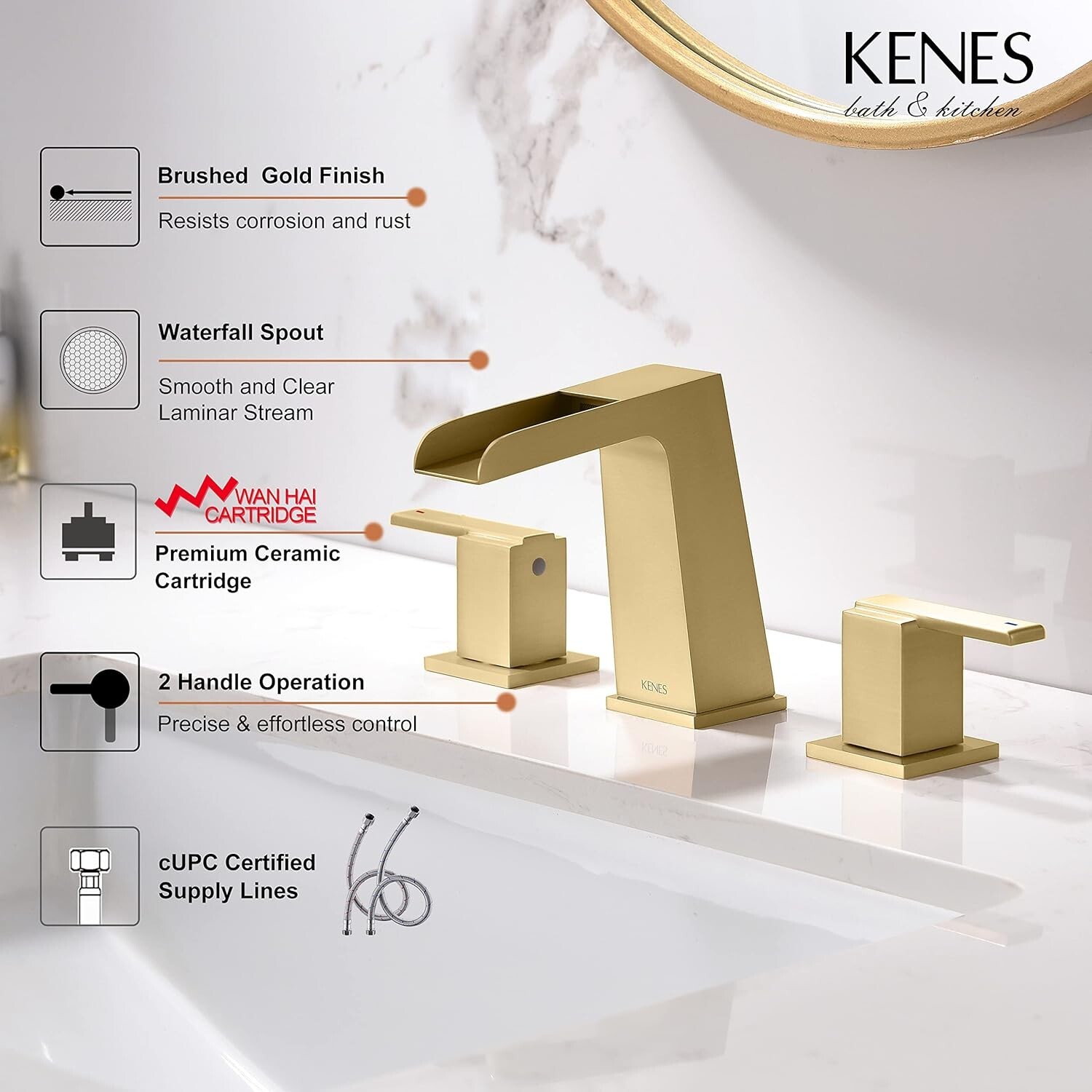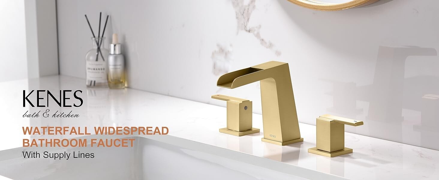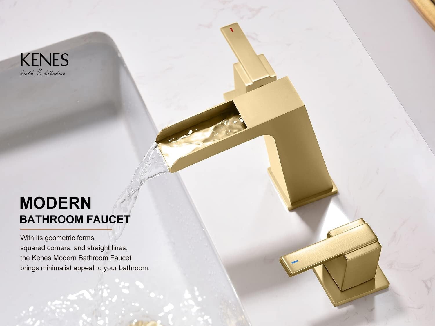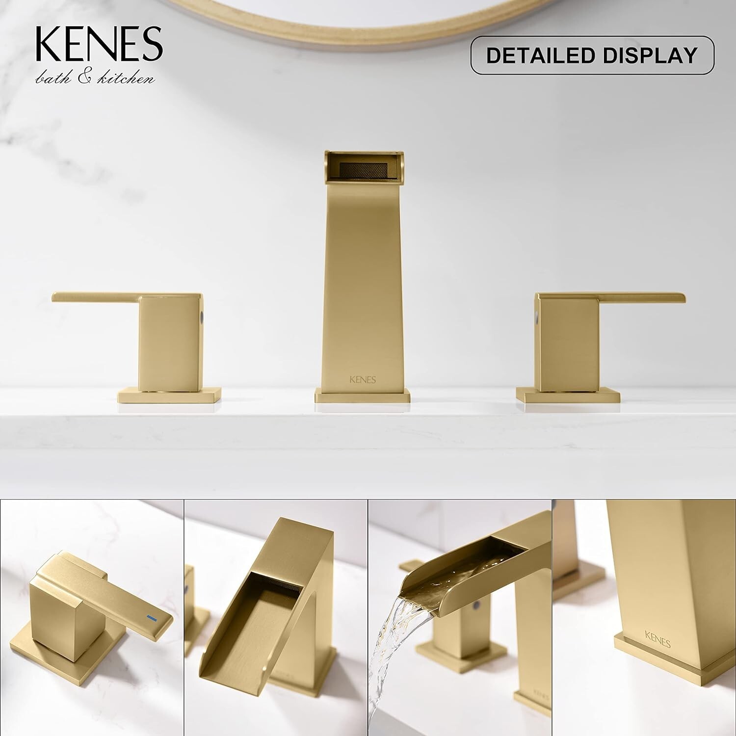 как выглядит KENES Oil Rubbed Bronze Open-Spout Waterfall Bathroom Faucet, 8-Inch Widespread фото