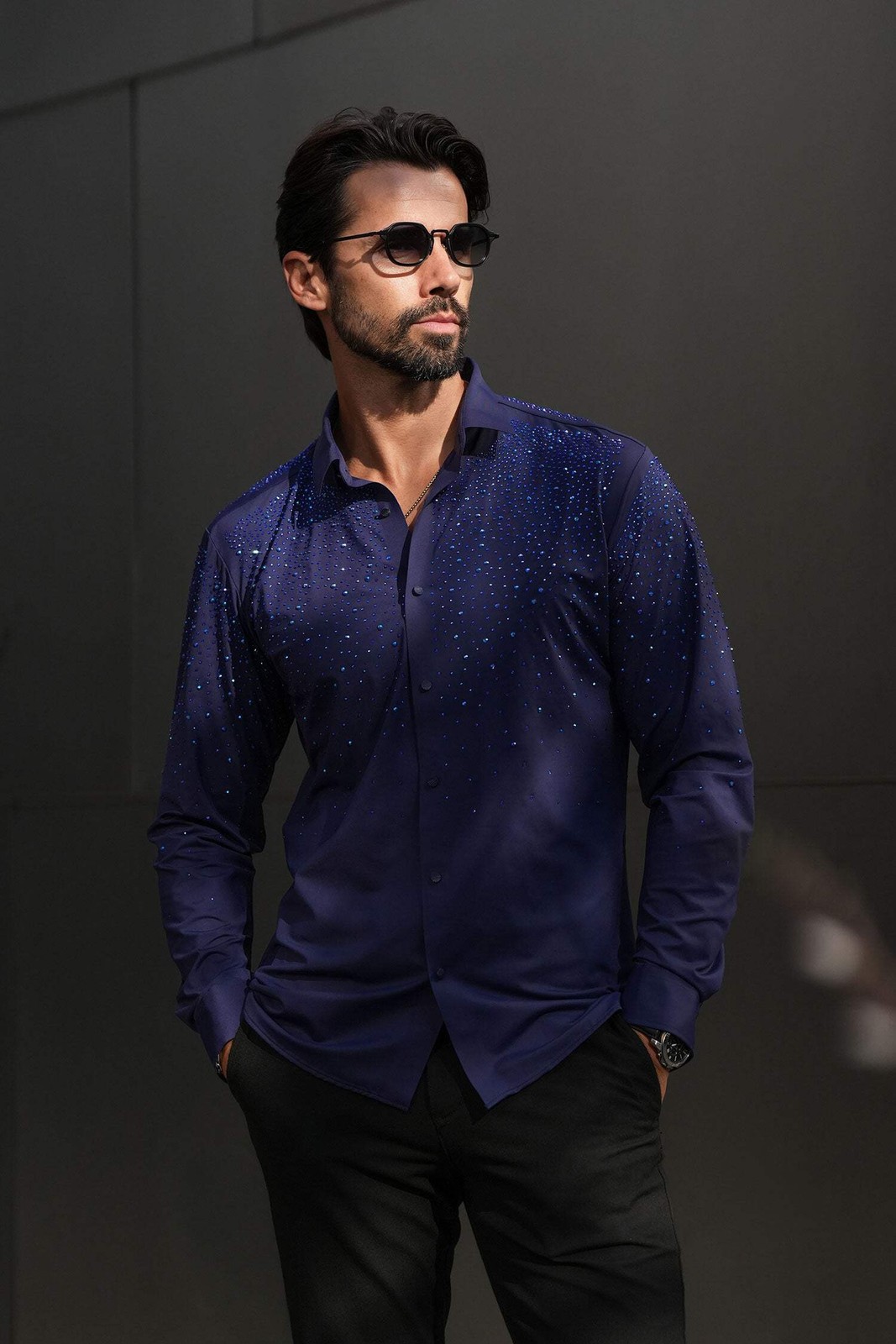 Barabas Men's Rhinestones Jewels Long Sleeve Shirt 4B06